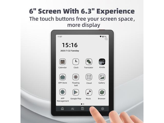 - 6-Inch Color E-Paper Display: Enjoy sharp text and vibrant images on a 6-inch color E-paper screen. Gentle on the eyes, it allows for comfortable, extended reading sessions, providing a pleasant reading or multimedia experience.