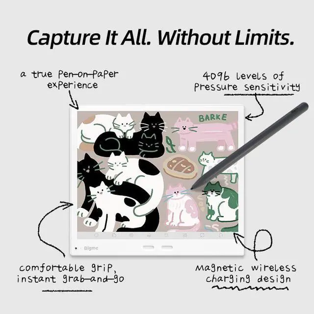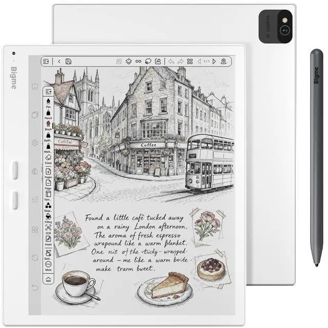 The Bigme B10 Color E-Paper Tablet features a 10.3-inch color e-ink display for crisp text and vivid colorsperfect for reading, note-taking, and sketching. The included stylus enables precise handwriting and smooth annotation. Powered by an octa-core processor, 8GB RAM, and 256GB storage, it delivers fast performance with ample space. The 6900mAh battery ensures long use, and 4G LTE keeps you connected. Running on Android 14, it supports a wide range of apps for work, learning, and entertainmentall in one portable device.
