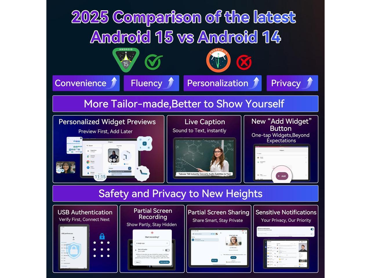 - Smarter Than Ever: Transform work and play with the newest Android 15 tablet powered by Gemini AI 2.0. It can offer voice-controlled reminders in meetings, instant translations while travelling, and AI-powered study notes, acting as a personal assistant adapting to your lifestyle.