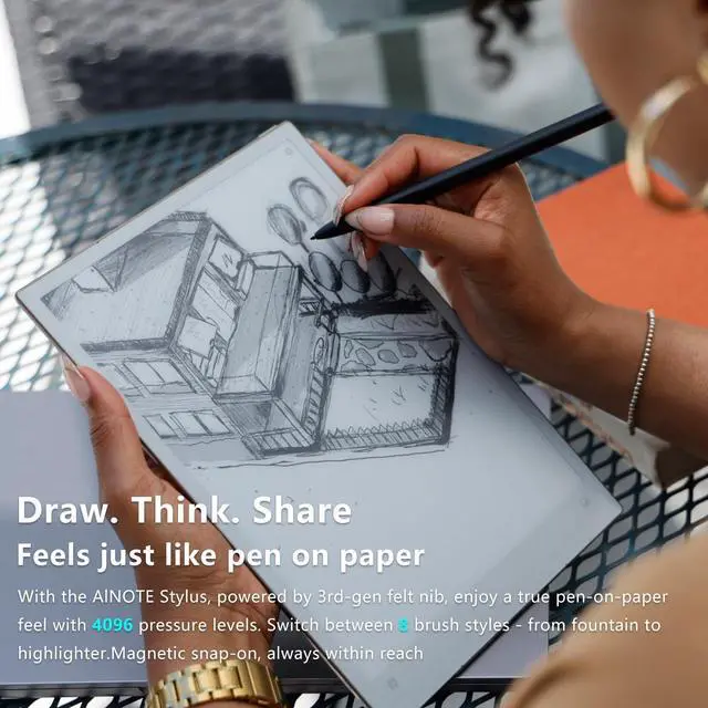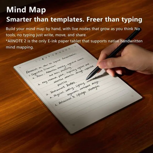 Paper-Like Writing Experience (Frontlight-Free E-Ink Device):With 8 brush styles and low-latency handwriting performance, AINOTE 2 offers a writing feel similar to pen on paper. The frontlight-free E-ink display provides comfortable viewing under normal indoor and outdoor lighting. Note: Not intended for low-light or dark-room writing without external lighting.
