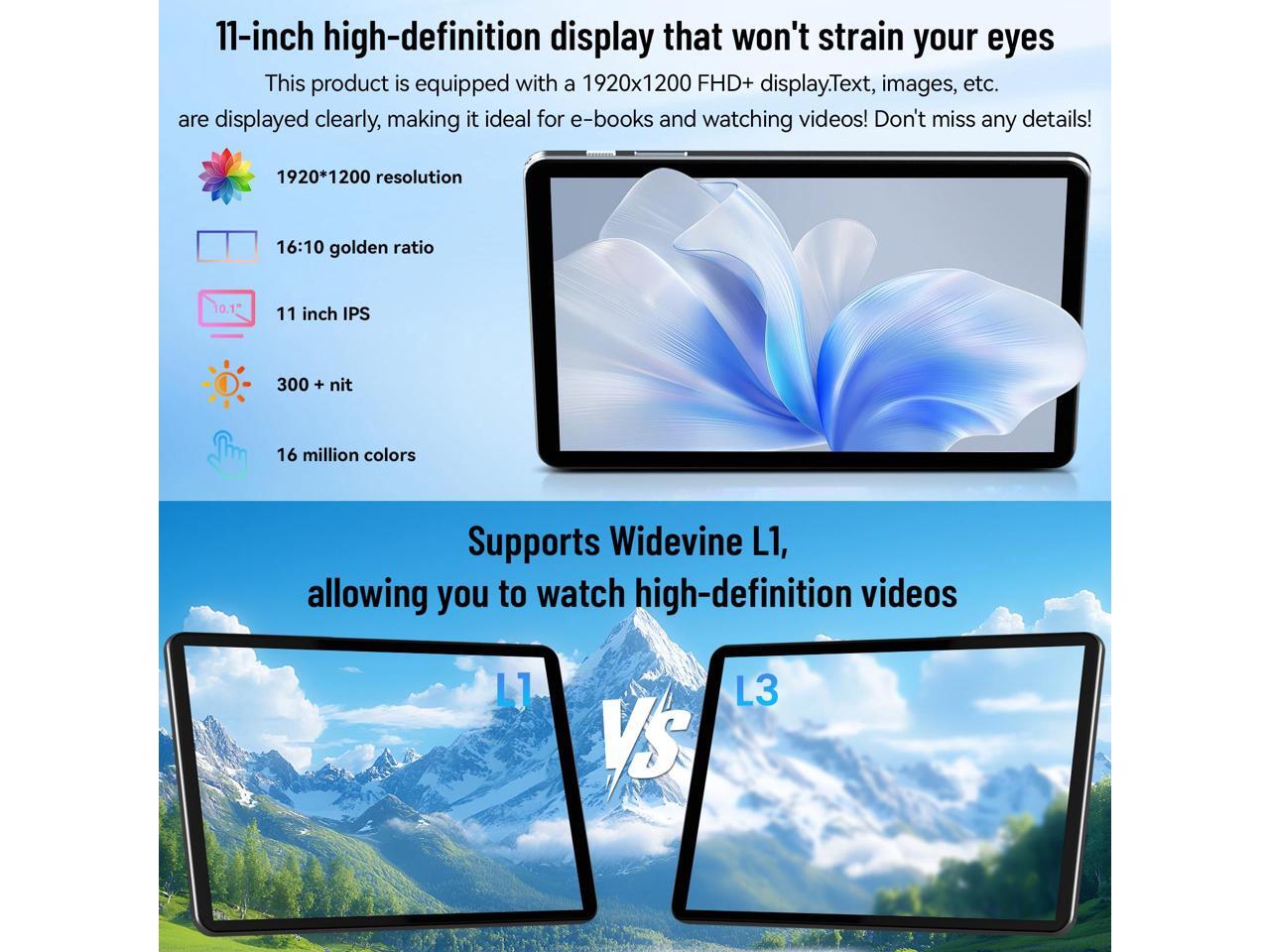 Alphawolf Android 15 Tablet 11-inch 1200X1920 IPS T615 Octa-core CPU 20GB (8+12GB Expand) 128GB ROM (2TB Expansion) 13Mp+5Mp Camera/Facial ID, 8000mAh Battery, Widevine L1, Gemini AI