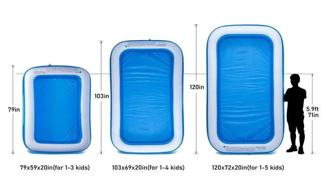 ![]() 50x33x17in | ![]() 61x42x18in | ![]() 79x59x20in | ![]() CHICLIST Inflatable Swimming Pool 103" X69" X20" Full-Sized Lounge Pool for K... | ![]() 120x72x20in | |