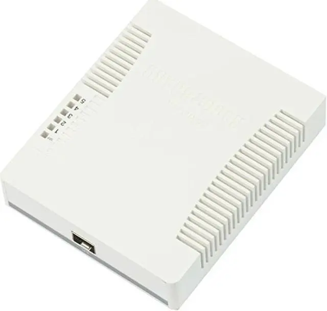 The RB/260GS is a small SOSO switch. It has (5) Gigabit Ethernet ports and (1) SFP cage powered by an Atheros Switch Chip. It is powered by an operating system designed specifically for Mikro