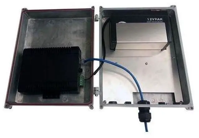 Features include an advanced battery charge controller to protect against over-charging or over-discharging of the valve regulated sealed lead acid AGM batteries. Enclosures have multiple ports for CAT5 cable, antenna cables/connectors or other cabling. They are vented to prevent residual buildup of hydrogen gas. Customer electronics operate from battery power so they are isolated from damaging power line surges. The batteries are continuously charged via the POE input and/or solar power. The controller has a secondary wire terminal output which equals the battery voltage for connecting multiple pieces of equipment to the battery power, in addition to the POE output.