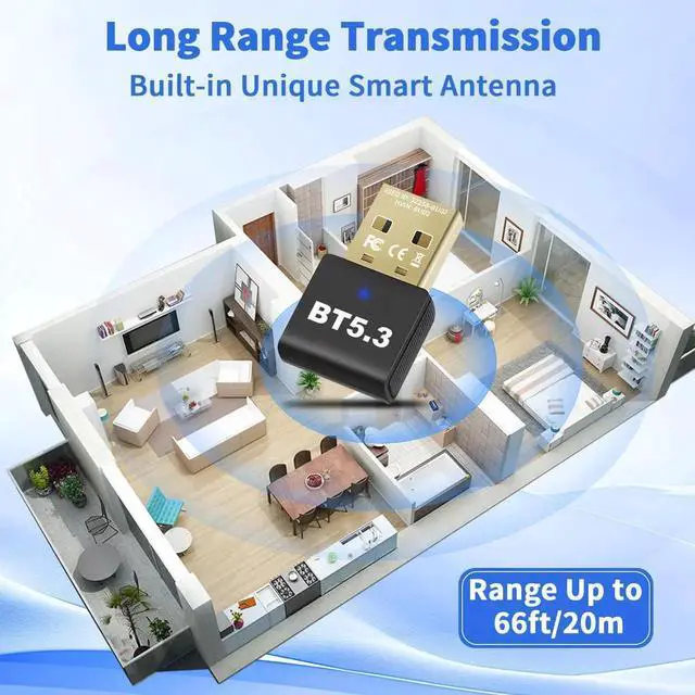 Our New Bluetooth 5.3 adapter features advanced Realtek chip with dual-mode work. achieve lightning-fast transfer speeds up to 3Mps, significantly reducing both latency and power consumption. Faster responses, less lag from interference.