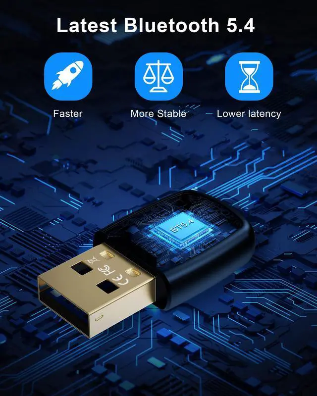 Latest Bluetooth Dongle 5.4 TechnologyThe bluetooth adapter for pc adopts the latest Bluetooth 5.4+EDR technology, providing faster data transfer speeds (3 Mbps) and lower power consumption. The bluetooth usb is backward compatible with Bluetooth 2.0/3.0/4.0/5.0/5.1/5.3 devices, ensuring stability and anti-interference capability.