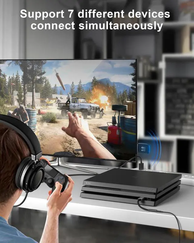 Multiple Device ConnectivityThe usb bluetooth adapter for pc can simultaneously connect up to 7 Bluetooth devices, such as Bluetooth headsets, speakers, keyboards, mice, phones, and game controllers, providing a seamless multi-device connection experience.