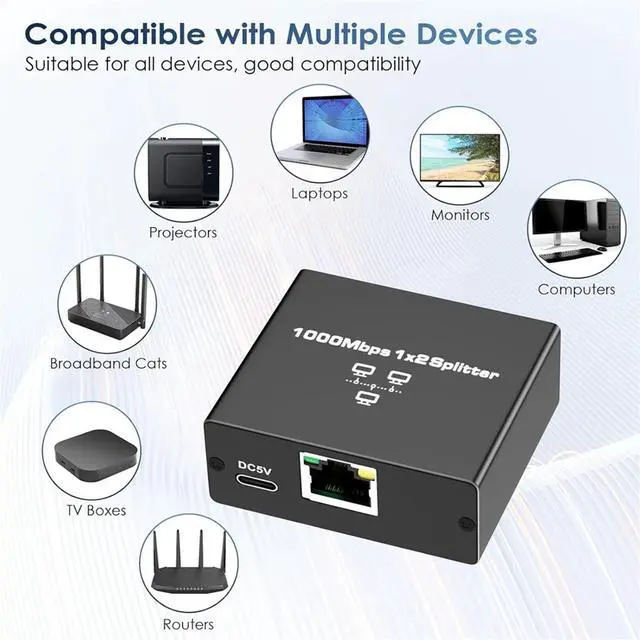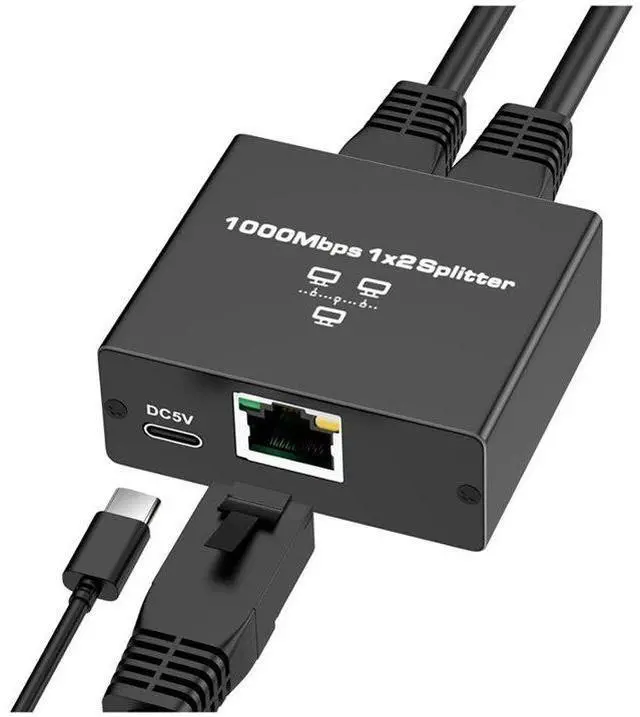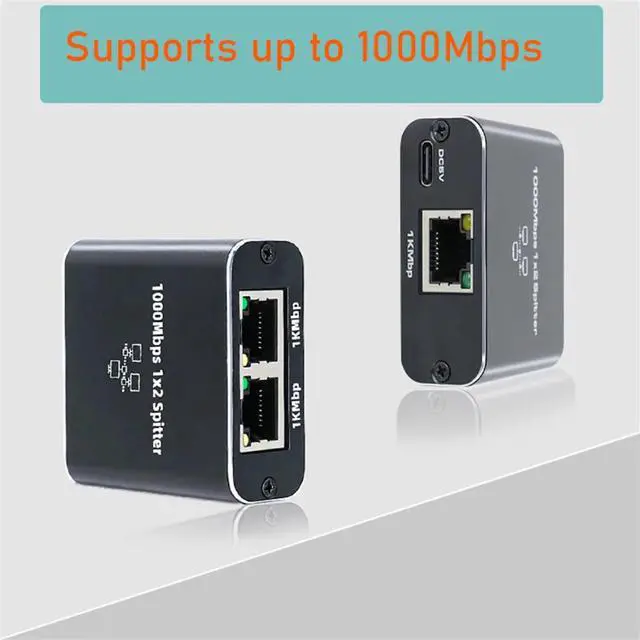 Ethernet Splitter 1 to 2 High Speed Ethernet Switch 1000Mbps 2 Port Gigabit Ethernet Splitter Splitter with Power Cord,1 * Ethernet splitter 1 * data cable,Black