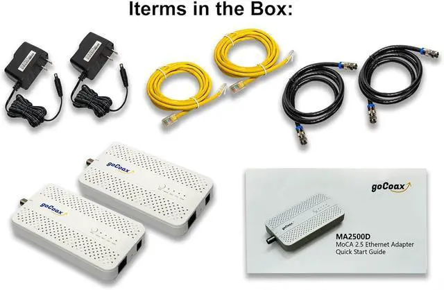 goCoax MoCA 2.5 Adapter with 2.5GbE Ethernet Port. MoCA 2.5. 1x 2.5GbE Port. Provide 2.5Gbps Bandwidth with existing coaxial Cables. White(2-Pack, MA2500D)
