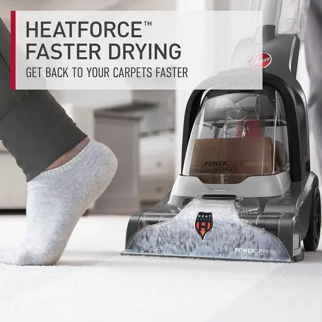 Product Feature: Powerful SuctionPowerfully target deep stains and pick up excess water with stronger suction. 2-in-1 Pet Tool2-in-1 pet tool with bristle and rubber nub attachments tackles pet mess with less hassle and gives you the versatility you need to get the right clean for the right mess. The most powerful compact carpet cleaner + above floor versatility*Compact, lighweight design makes it easy to grab & go and tackle everything from everyday messes to high traffic areas. Above Floor VersatilityClean beyond floors with tools and attachments that give you the versatility you need to clean and use on carpet, stairs, upholstery, and more. Compact ConvenienceCompact, lighweight design makes it easy to grab & go and tackle everything from everyday messes to high traffic areas. HeatForce Faster DryingHeatForce Technology dries as you clean and gets you back to your carpets faster. Pet PerformancePerfect for pets, the PowerSpin Pet Brush Roll and included Paws & Claws cleaning formula work together to loosen and lift pet stains. Antimicrobial AdditiveThe brush roll is embedded with antimicrobial protection to help prevent the build up of unwanted bacteria and pet odor. 2-in-1 Pet Tool2-in-1 pet tool with bristle and rubber nub attachments tackles pet mess with less hassle and gives you the versatility you need to get the right clean for the right mess.