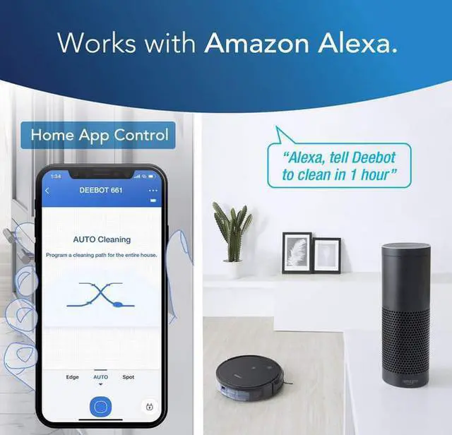 DEEBOT 661 comes with a 1 year. Simply move cables and household items that could be on the floor out of the way to avoid entanglement. When the job is complete or DEEBOT 661 low on battery, with auto charging, it will return to its dock to prepare for the next cleaning. With Alexa and Google Assistant compatibility, utilize voice commands such as “Alexa, ask DEEBOT to start cleaning”. DEEBOT 661 also comes with an easy to use remote control.