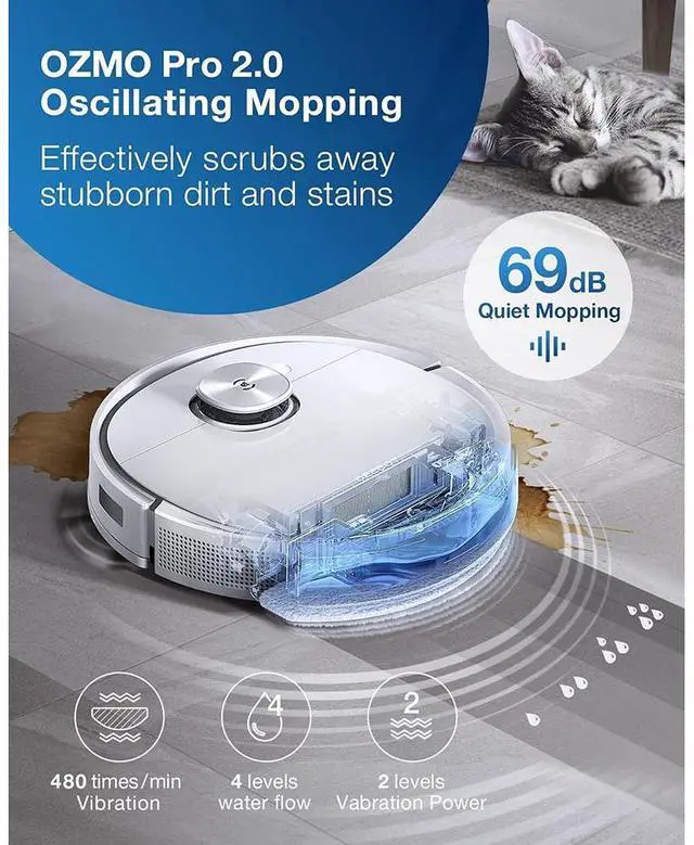 ECOVACS DEEBOT TEO+Robot mop and vacuum with mobile air freshener, auto-empty station and disposable mopping padProduct HighlightECOVACS APP ControlUltra-Strong 3000Pa SuctionAuto-Empty Station with 2.5L Capacity Dust BagInfuse your Home with Luxurious FragranceTrueDetect 3D 2.0 Obstacle Avoidance Technology (3D structured light) TrueMapping 2.0 Technology with Multi-floor MappingOZMO Pro 2.0 Powerful Mopping SystemCleanable