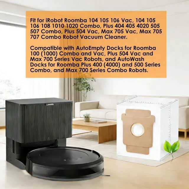 Compatible with AutoEmpty Docks for Roomba 100 (1000) Combo and Vac, Plus 504 Vac and Max 700 Series Vac Robots, and AutoWash Docks for Roomba Plus 400 (4000) and 500 Series Combo, and Max 700 Series Combo Robots