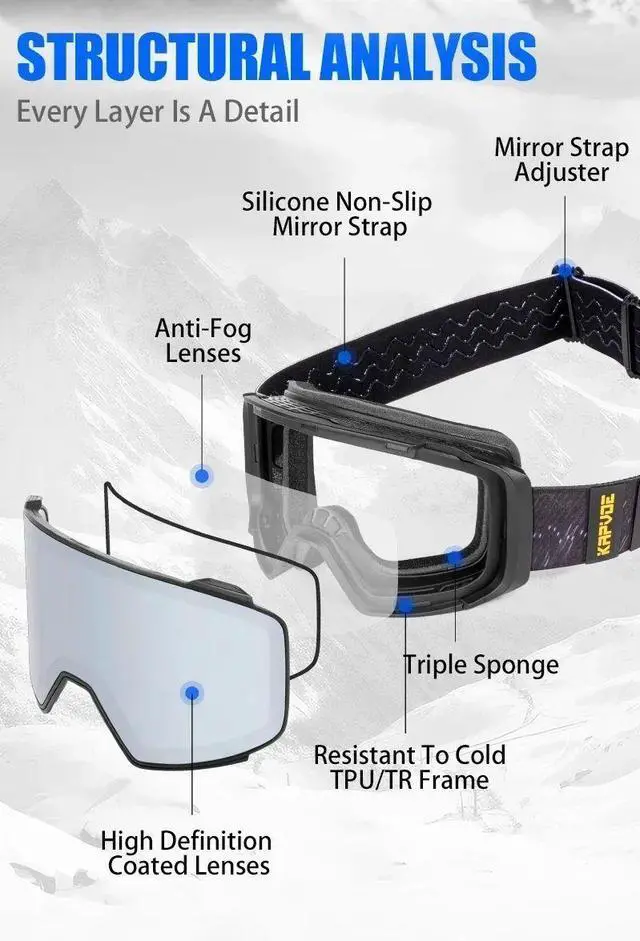 Kapvoe Photochromic Snow Goggles Ski Professional Winter Men