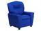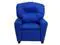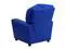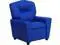 The child-sized recliner with plush padding is a perfect spot for kids to watch TV, play video games or read their favorite book. The chair features a built in cup holder to free up busy hands and prevent spills. This sturdy little recliner has a solid hardwood frame, soft foam padding and durable vinyl upholstery that cleans easily with a damp cloth. It has raised black plastic feet and will hold up to 90 pounds. Designed with safety in mind, it's filled with foam and reclines only when a child is seated and the footrest is pulled out one". This cozy kids recliner will be a great addition to your living room or your child's bedroom or playroom.