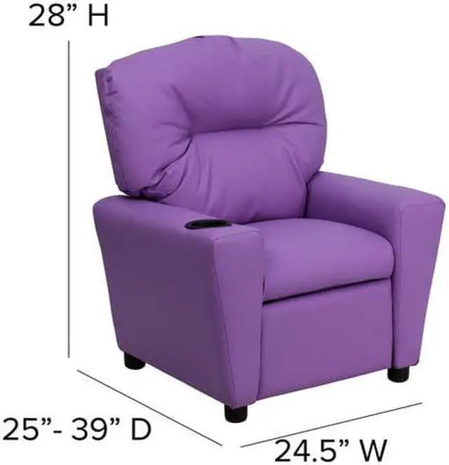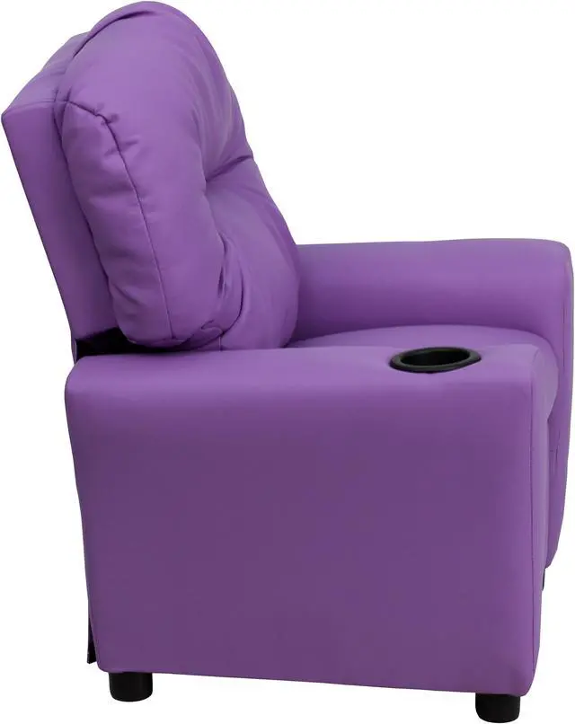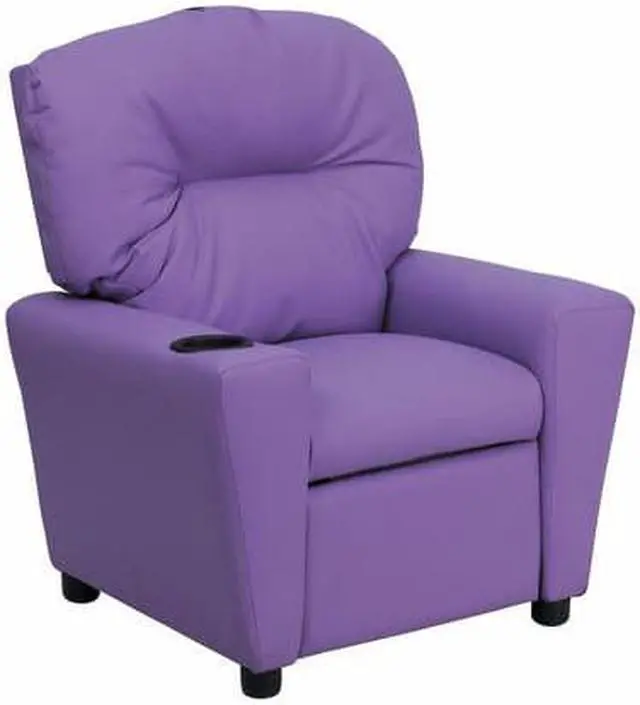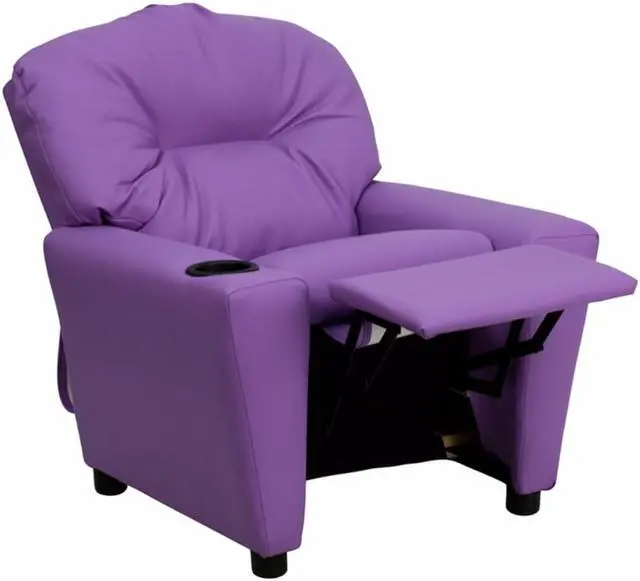 Contemporary Lavender Vinyl Kids Recliner with Cup Holder