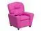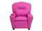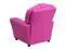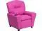 Whether your little one has two or four legs, they will be thrilled to have their own recliner! This hot pink recliner chair for kids with plush padding is a perfect spot to watch TV, play video games or read their favorite book. The chair features flip-up storage arms for holding your child's treasures or treats for your pets good behavior. This sturdy little recliner has a solid hardwood frame, soft foam padding and durable vinyl upholstery that cleans easily with a water-based cleaner. It has raised black plastic feet and will hold up to 90 pounds.