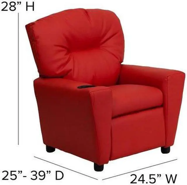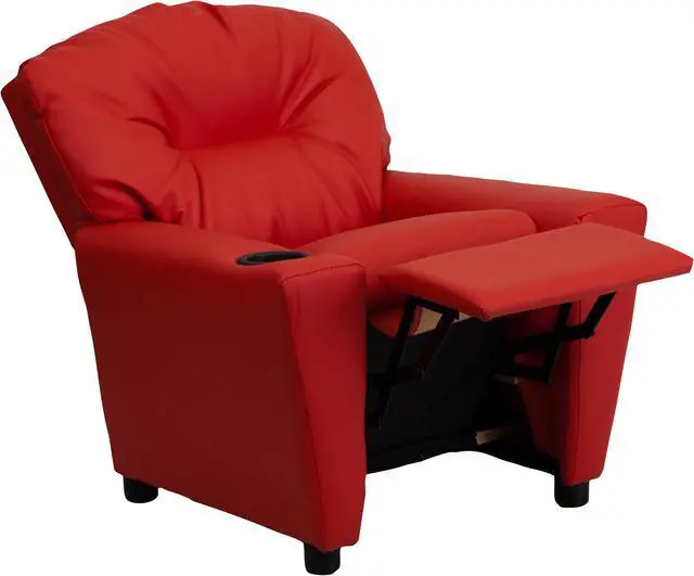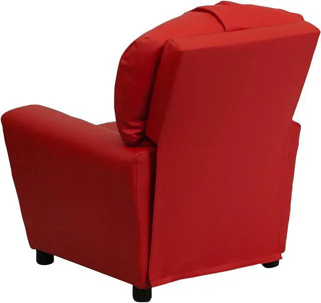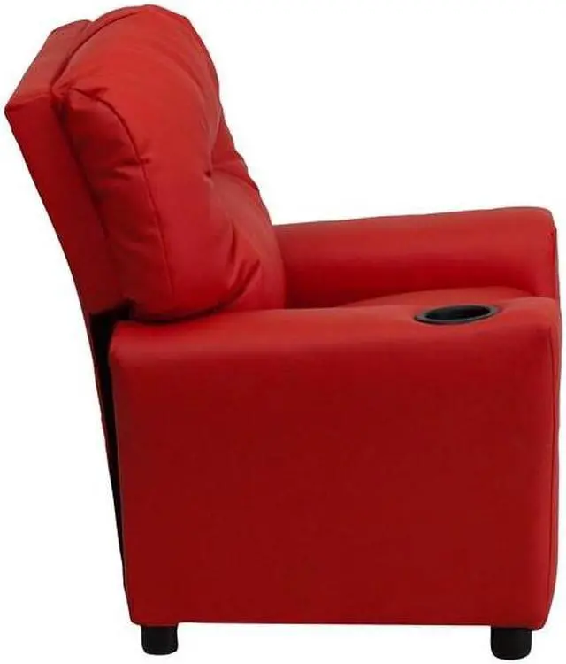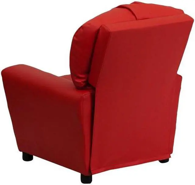 Contemporary Red Vinyl Kids Recliner with Cup Holder