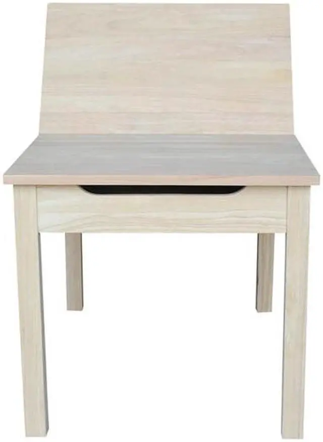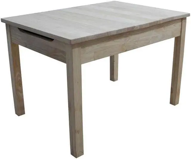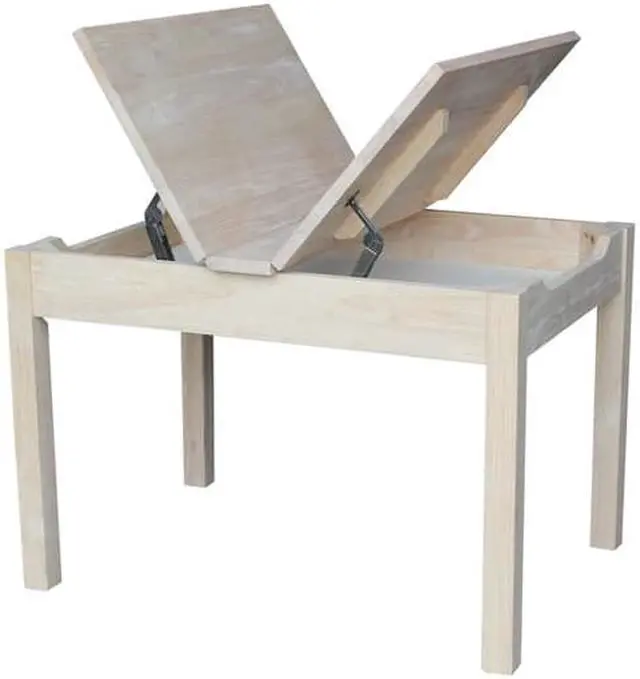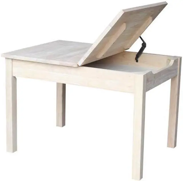 Table with lift up top for storage Unfinished This unfinished Solid wood Juvenile Table with Lift Up Top from International Concepts will fit any décor. Make it your own by selecting your choice of finish.