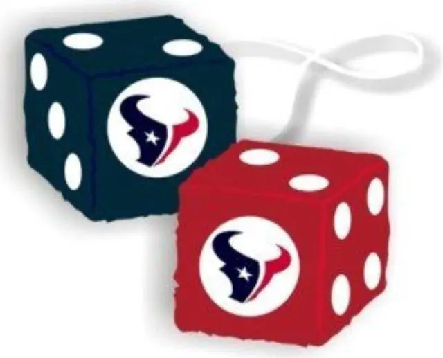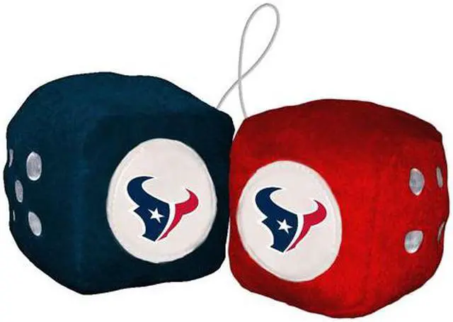 FREMONT DIE, Inc Houston Texans Fuzzy Dice. Brand New. . Display your team proudly with these officially licensed NFL Fuzzy Dice. The dice are 3 Inch x 3 Inch each made in team colors with sewn on logo. Comes with string attached for hanging.