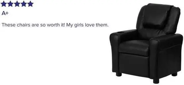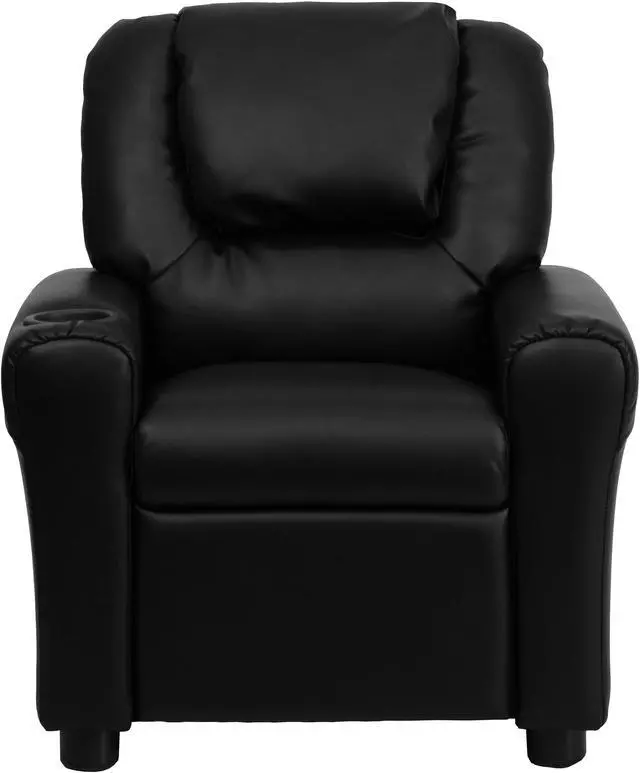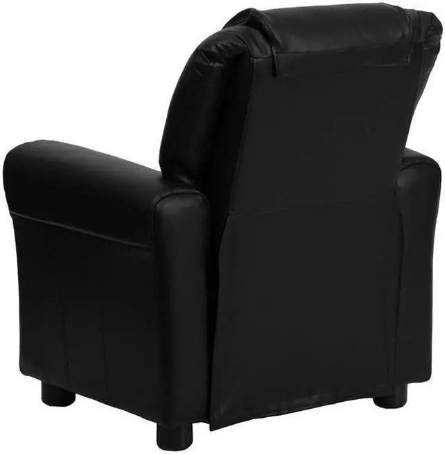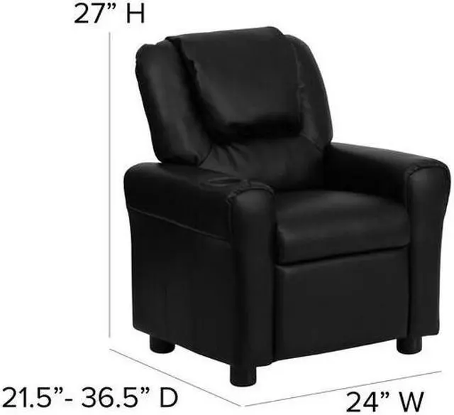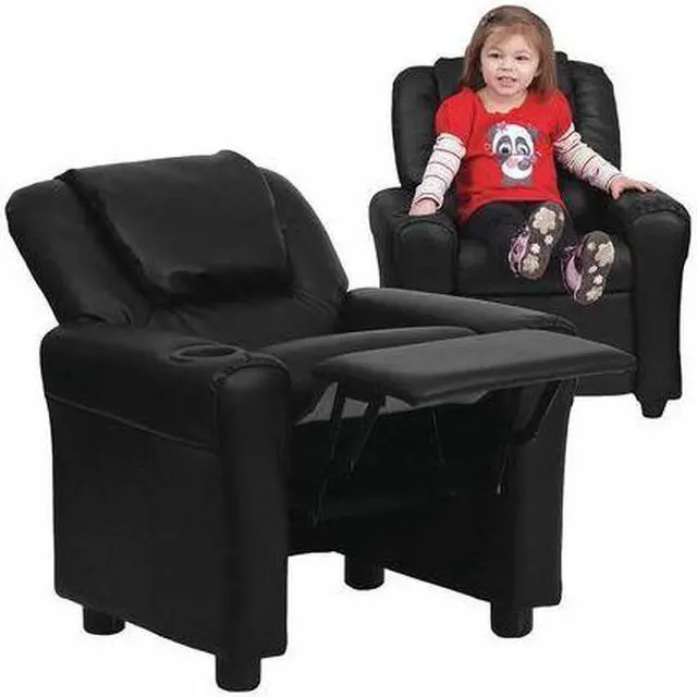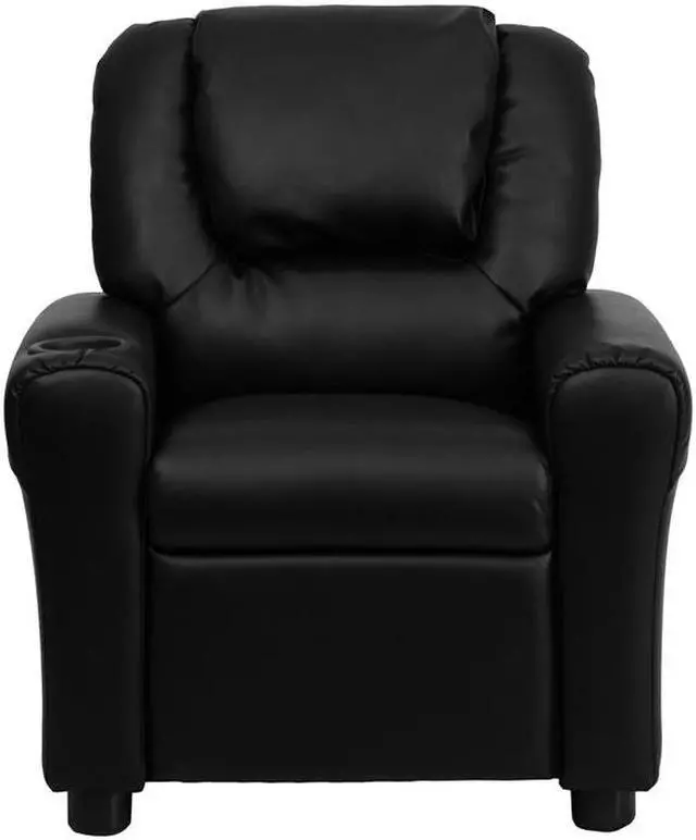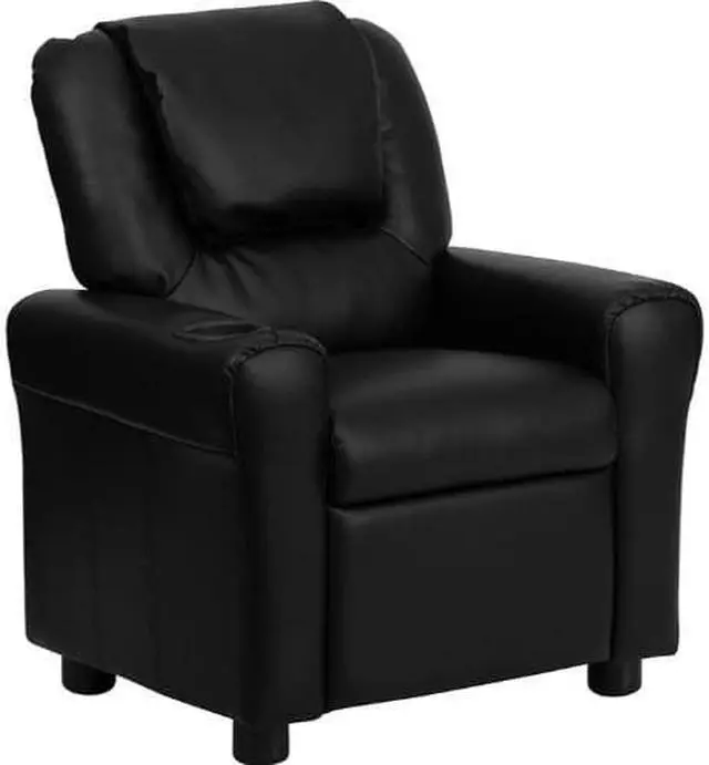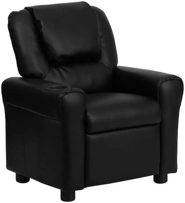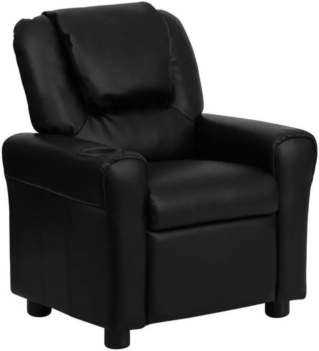 Contemporary Black LeatherSoft Kids Recliner with Cup Holder and Headrest