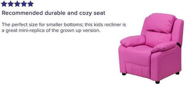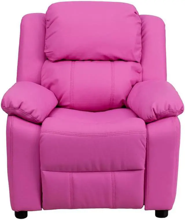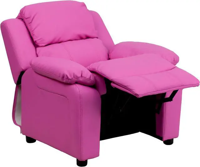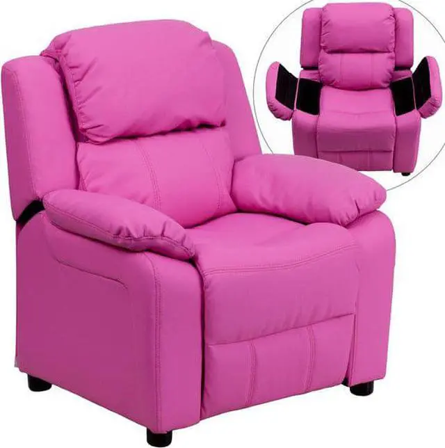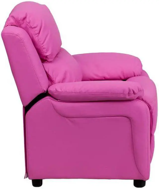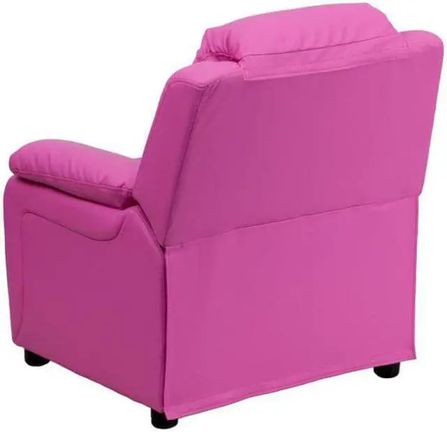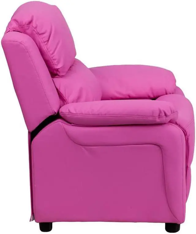 Deluxe Padded Contemporary Hot Pink Vinyl Kids Recliner with Storage Arms