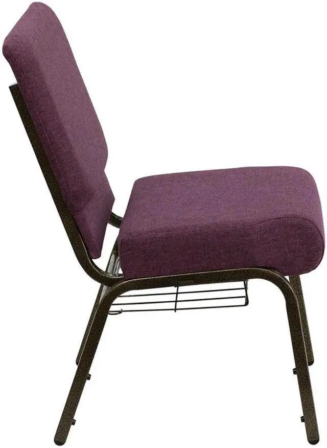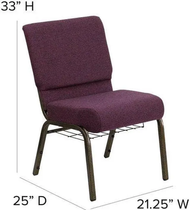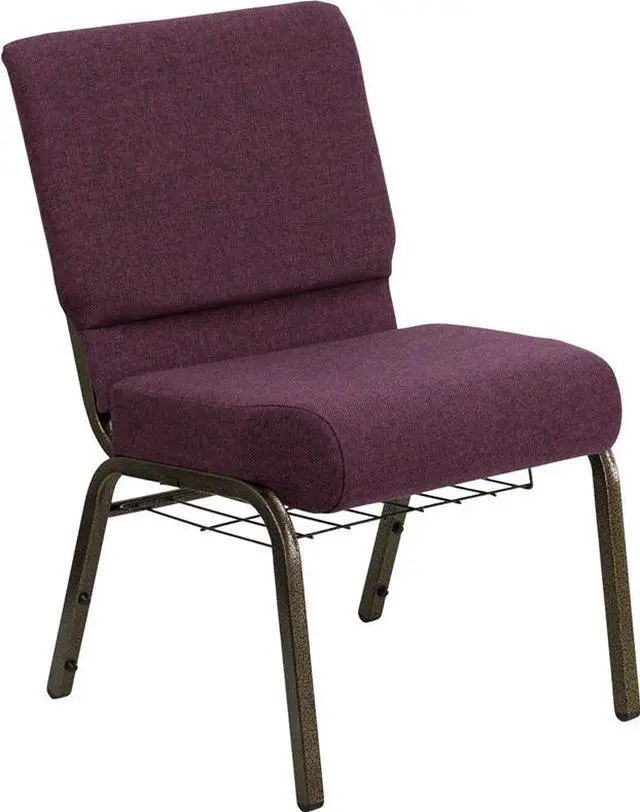 HERCULES Series 21''W Church Chair in Plum Fabric with Cup Book Rack - Gold Vein Frame
