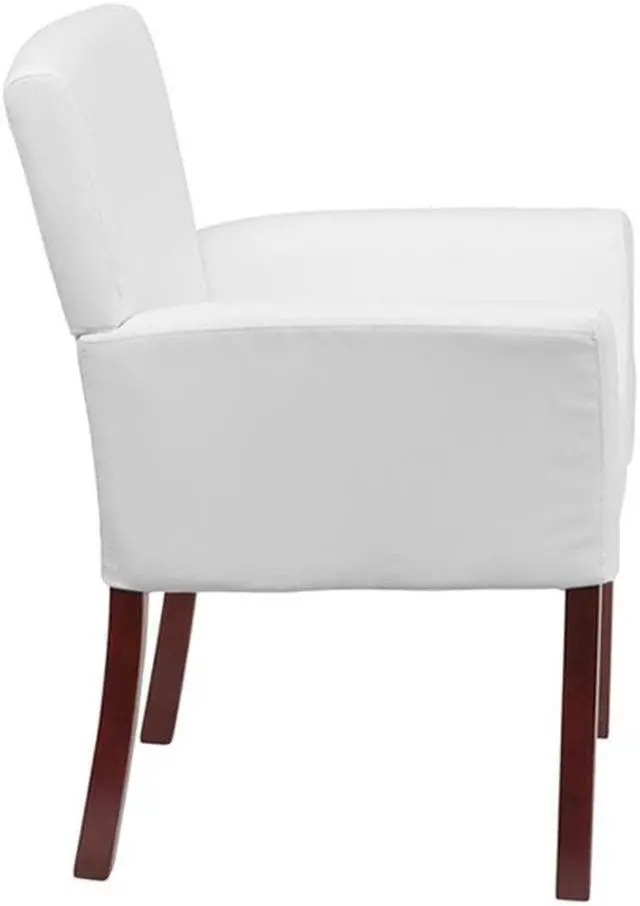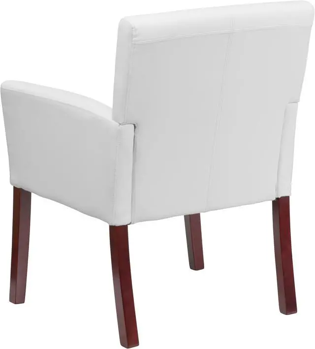 Be daring with your office decor by adding white seating. This attractive white LeatherSoft guest chair will stand out when guests come into your place of business or inside your office. Even if you're not furnishing an office you can make a conversational setting off your living room or in that room you can't figure out what put in, the design pairs well with glass and wooden tables. Fit for any space, this guest chair serves as a comfortable waiting room chair, lobby chair, or office chair. Box stitch upholstery on the back and seat add a refined appearance.