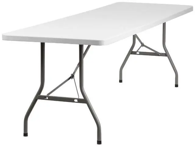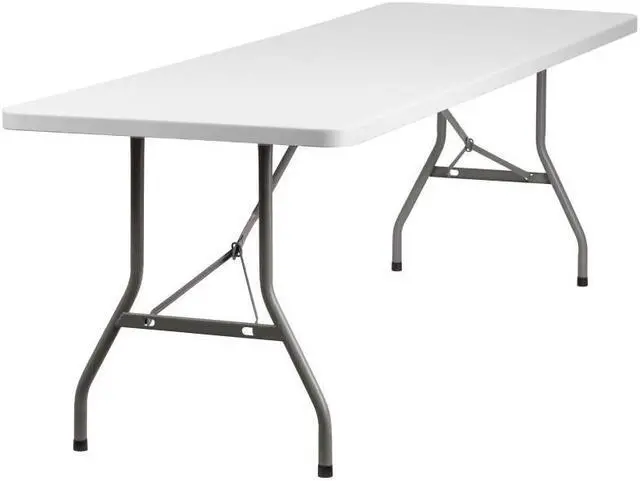 Do you have a large family who designates your home for Thanksgiving and Christmas dinners? You need this expansive rectangular folding table to solve the dilemma of where everyone will gather to eat, having a couple of these tables in storage will become beneficial. This event folding table accommodates up to 10 adults to throw big birthday parties and baby showers. This ready to use table is commercial grade and is often used in restaurants, warehouses, schools, churches and recreation centers. Event rental venues keep rectangle folding tables on the premises as they are the most used to accommodate parties of all sizes. Rectangular tables can be arranged to create a u-shape to allow space for a dance floor. Dress the tables up for elegant events with linen table covers and two centerpieces. Easy to clean and store, plastic folding tables are the best and most popular option for any occasion. Although designed for indoor events this party table can be used outdoors on the deck or patio during good weather. Store the table indoors and protect the frame from extreme moisture. Panic no more when you have extra dinner guests at your function, this 8' long folding table has space for plenty.Product Dimension-30"W x 96"D x 29"H