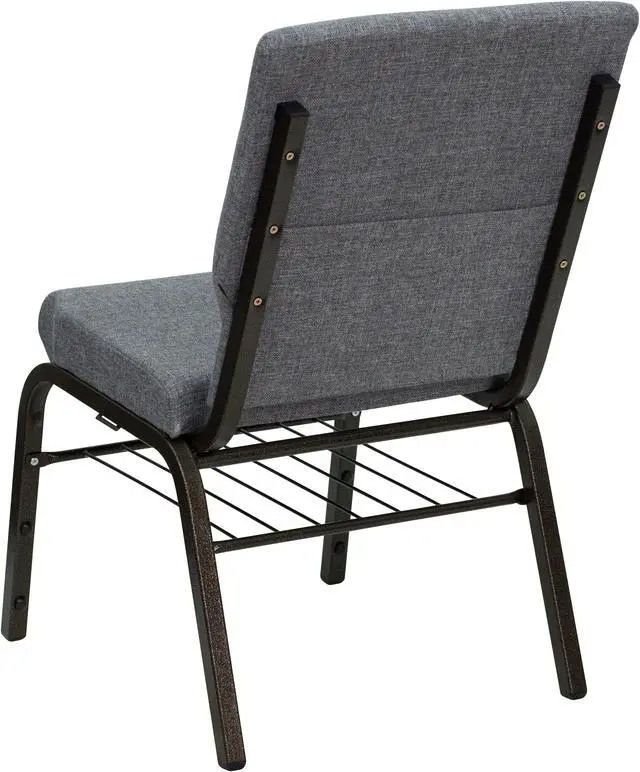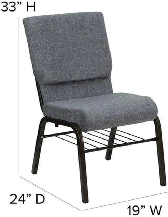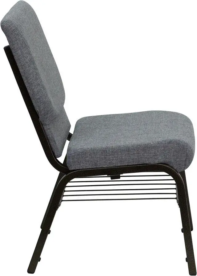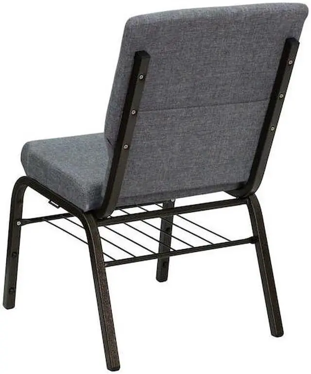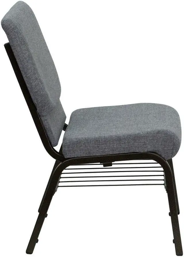 Built-in ganging brackets connect your chairs and maintain nice, straight rows. Its sturdy 16 gauge steel, gold vein frame, with gracefully angled legs, has been tested to hold up to 800 pounds and plastic rocker glides protect your floor by sliding smoothly when you need to move the chair. This Church Chair is an excellent option for hotel lobbies, banquet halls, conference facilities and worship centers.