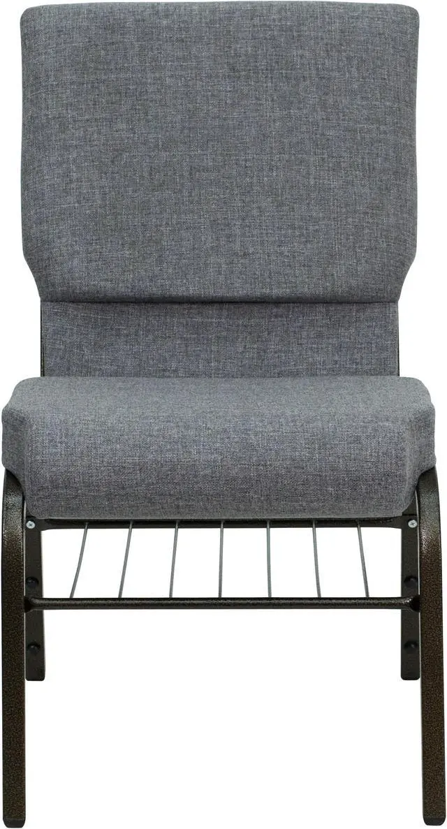 This beautiful church chair will keep your guests supremely comfortable whether you're hosting an all-day seminar, serving a 10 course meal or delivering your most inspirational sermon. This chair offers an advantage over pew seating with the flexibility of creating different seating configurations. The chair's cushioned back and 4" thick seat are generously padded and covered in durable fabric upholstery. The seat has a waterfall edge that reduces pressure on your attendees' legs. A convenient book pouch on the back of the chair keeps seminar materials, bibles or hymn books readily available and a book rack under the seat gives everyone a place to store their personal belongings.