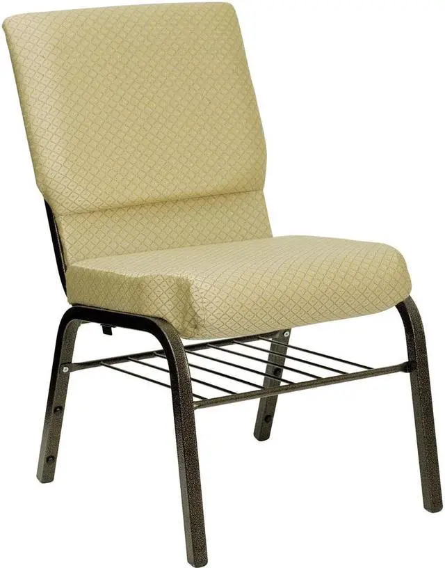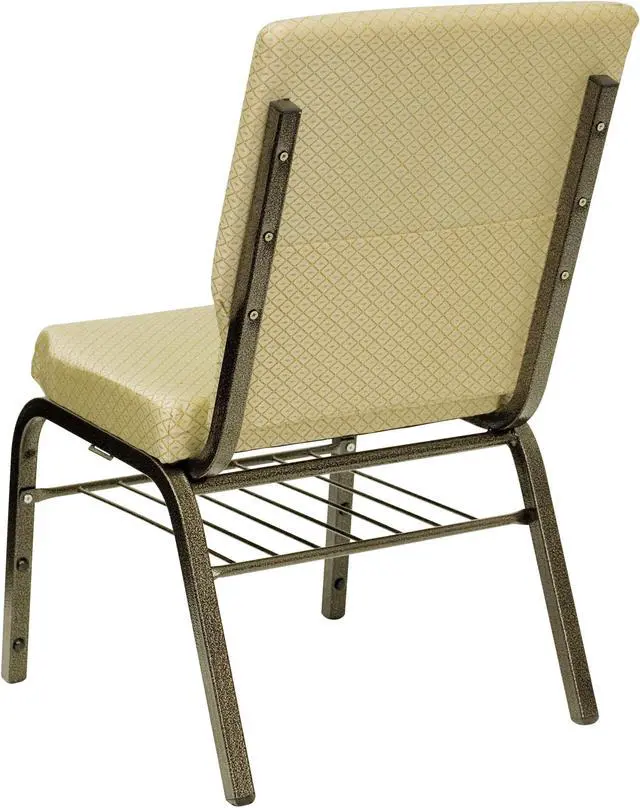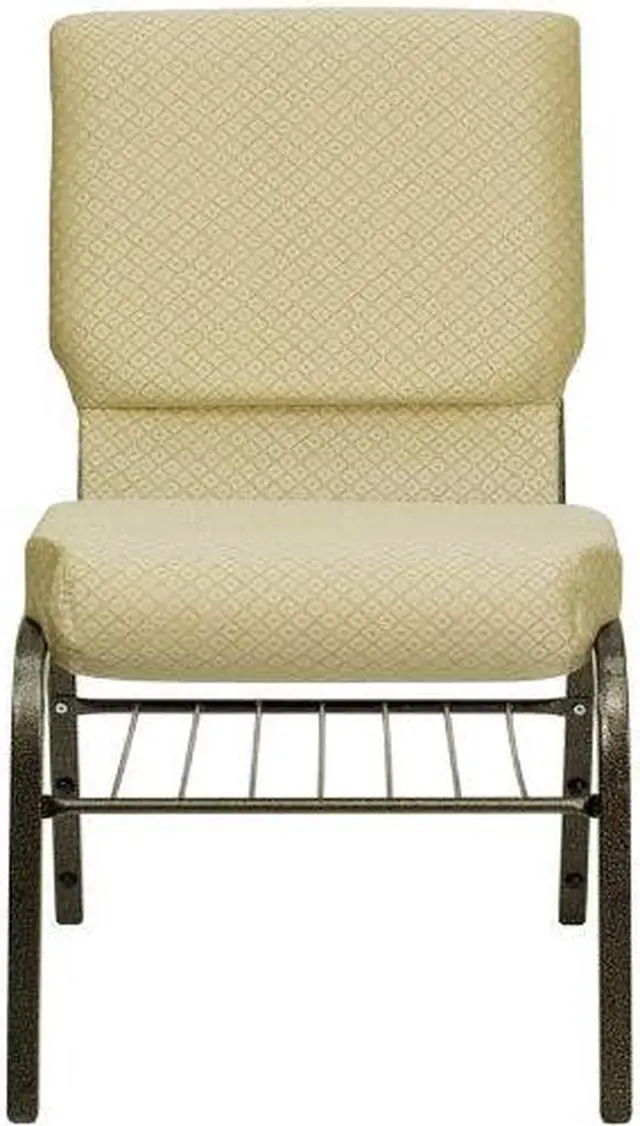 HERCULES Series 18.5''W Church Chair in Beige Patterned Fabric with Book Rack - Gold Vein Frame