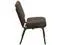 This beautiful, supremely comfortable padded chair will ensure your guests have an enjoyable experience whether you're hosting an all-day seminar, serving a 10 course meal or delivering your most inspirational sermon. Unlike pew seating, these chairs give you the capability to create different seating configurations as often as you wish making them an ideal seating solution for any venue. The upholstered stack chair with 4" thick seat are generously padded and covered in durable fabric upholstery. The spacious, 21" wide seat has a waterfall edge that provides an extra level of comfort by reducing pressure on your attendees' legs. A convenient book pouch on the back of the chair keeps seminar materials, bibles or hymn books readily available. Its sturdy 16 gauge steel, copper vein frame, with gracefully angled legs, has been tested to hold up to 800 pounds and plastic rocker glides protect your floor by sliding smoothly when you need to move the chair. This commercial side chair is stackable for easy storage making it an excellent choice for event venues, hotel lobbies, banquet halls, conference facilities and worship centers.Product Dimension-21.25"W x 25"D x 33"H