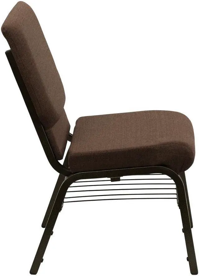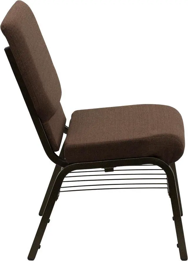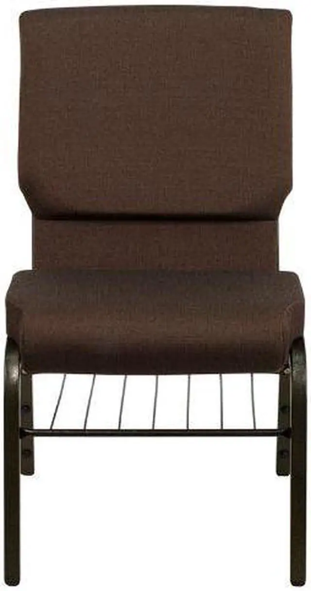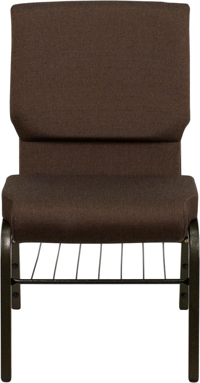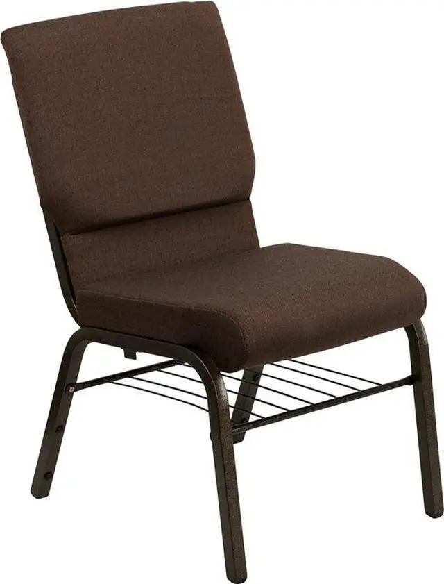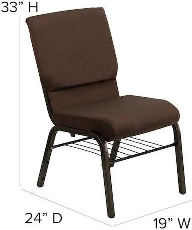 This beautiful church chair will keep your guests supremely comfortable whether you're hosting an all-day seminar, serving a 10 course meal or delivering your most inspirational sermon. This chair offers an advantage over pew seating with the flexibility of creating different seating configurations. The chair's cushioned back and 4" thick seat are generously padded and covered in durable fabric upholstery. The seat has a waterfall edge that reduces pressure on your attendees' legs. A convenient book pouch on the back of the chair keeps seminar materials, bibles or hymn books readily available and a book rack under the seat gives everyone a place to store their personal belongings.