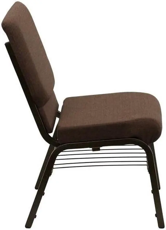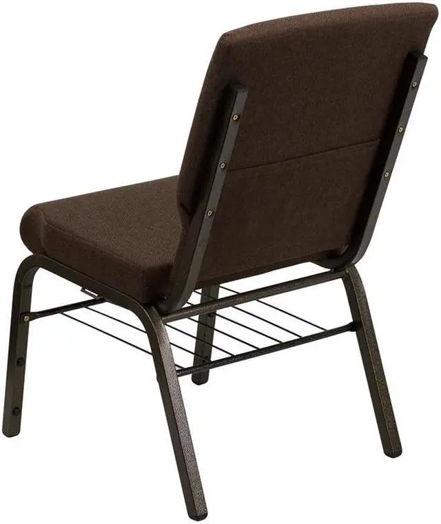 Built-in ganging brackets connect your chairs and maintain nice, straight rows. Its sturdy 16 gauge steel, gold vein frame, with gracefully angled legs, has been tested to hold up to 800 pounds and plastic rocker glides protect your floor by sliding smoothly when you need to move the chair. This Church Chair is an excellent option for hotel lobbies, banquet halls, conference facilities and worship centers.