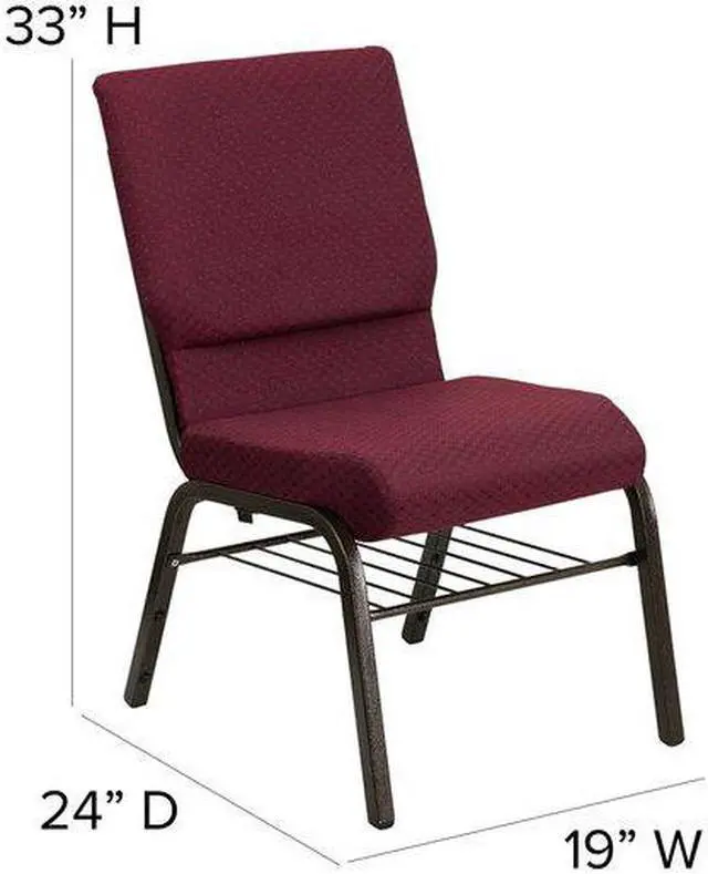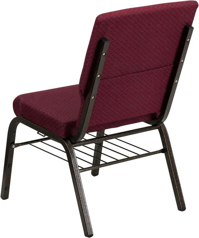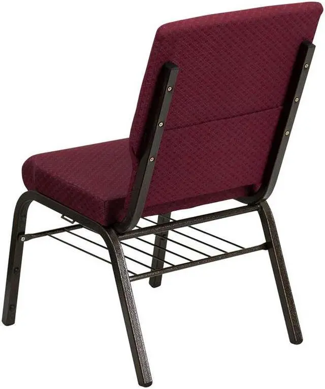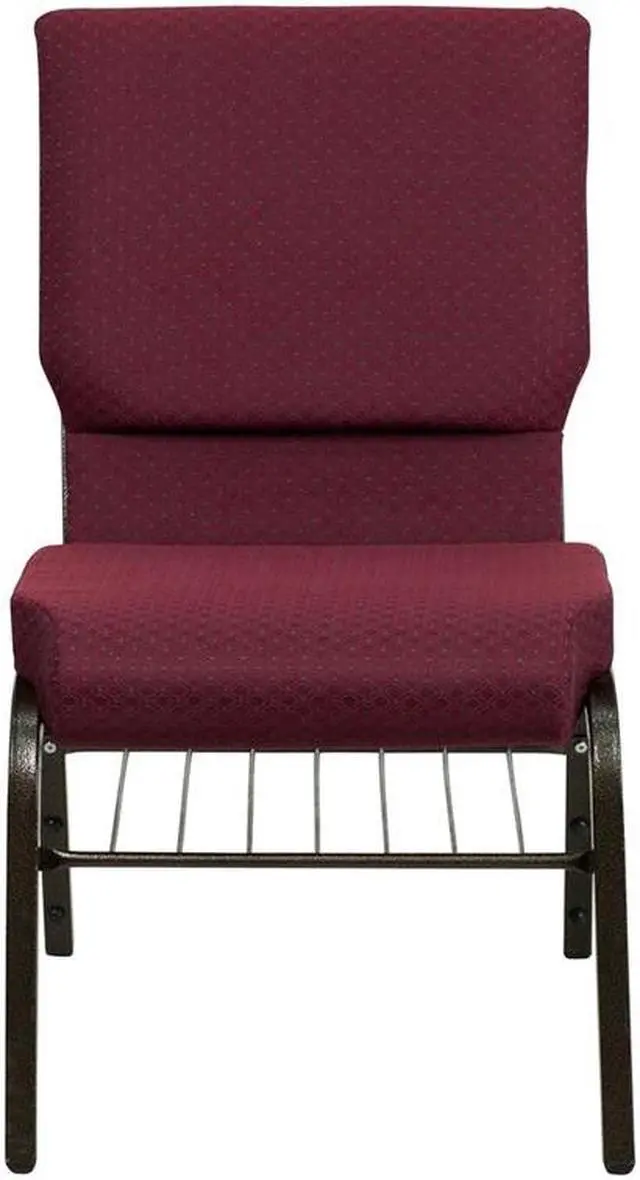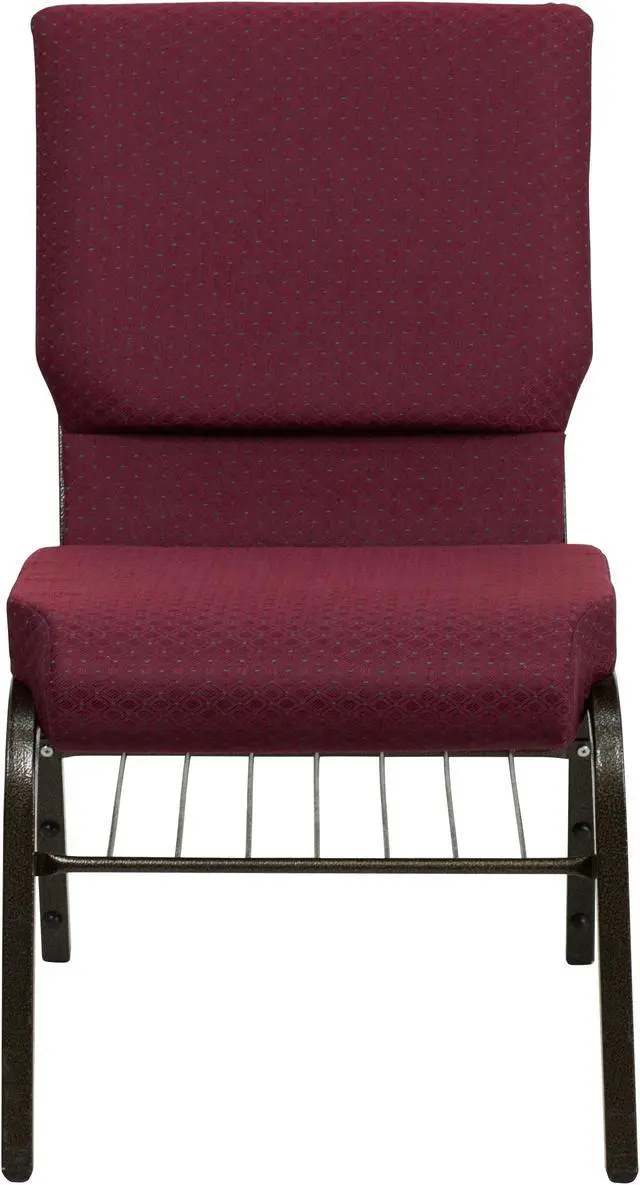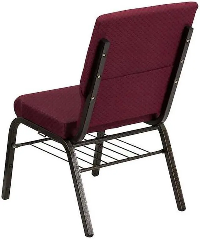 This beautiful church chair will keep your guests supremely comfortable whether you're hosting an all-day seminar, serving a 10 course meal or delivering your most inspirational sermon. This chair offers an advantage over pew seating with the flexibility of creating different seating configurations. The chair's cushioned back and 4" thick seat are generously padded and covered in durable fabric upholstery. The seat has a waterfall edge that reduces pressure on your attendees' legs. A convenient book pouch on the back of the chair keeps seminar materials, bibles or hymn books readily available and a book rack under the seat gives everyone a place to store their personal belongings.
