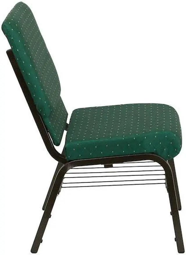 Built-in ganging brackets connect your chairs and maintain nice, straight rows. Its sturdy 16 gauge steel, gold vein frame, with gracefully angled legs, has been tested to hold up to 800 pounds and plastic rocker glides protect your floor by sliding smoothly when you need to move the chair. This Church Chair is an excellent option for hotel lobbies, banquet halls, conference facilities and worship centers.