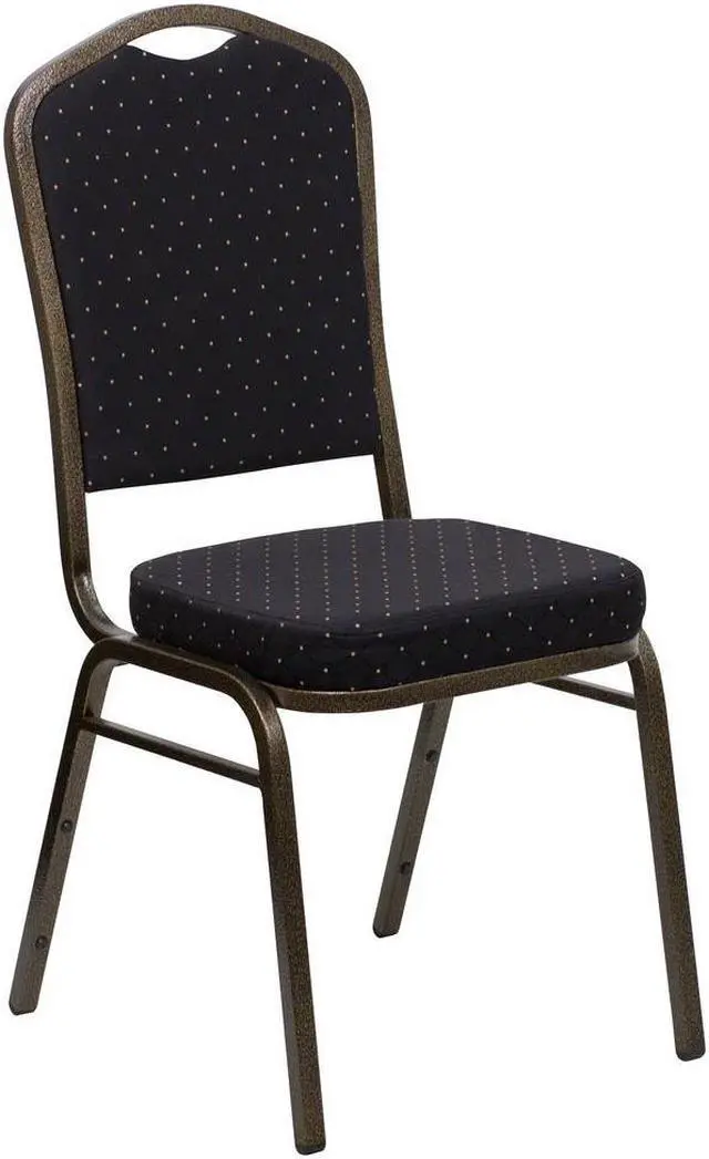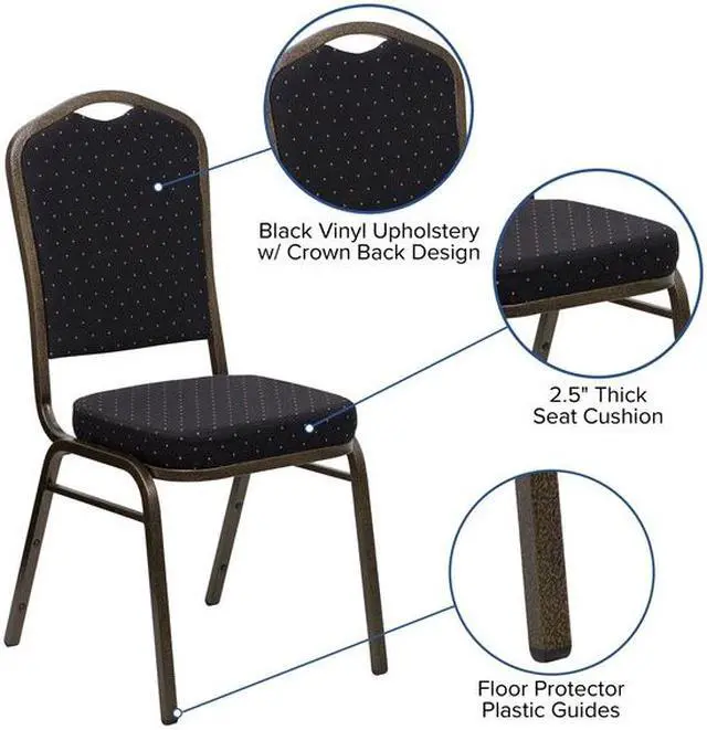 Make an impressive presentation in your banquet hall when clients come to visit your facility with these ballroom chairs. Built for the commercial industry these popular crown back banquet chairs have been tested to hold up to 500 pounds. With a high seating capacity these stack chairs are perfect for the event rental business. This standout hospitality chair can be used as is and still command attention or be dressed up for formal events by placing a chair cover over it. The chair is cushioned with 2.5" thick CAL 117 fire retardant foam and is covered in durable upholstery for high usage.