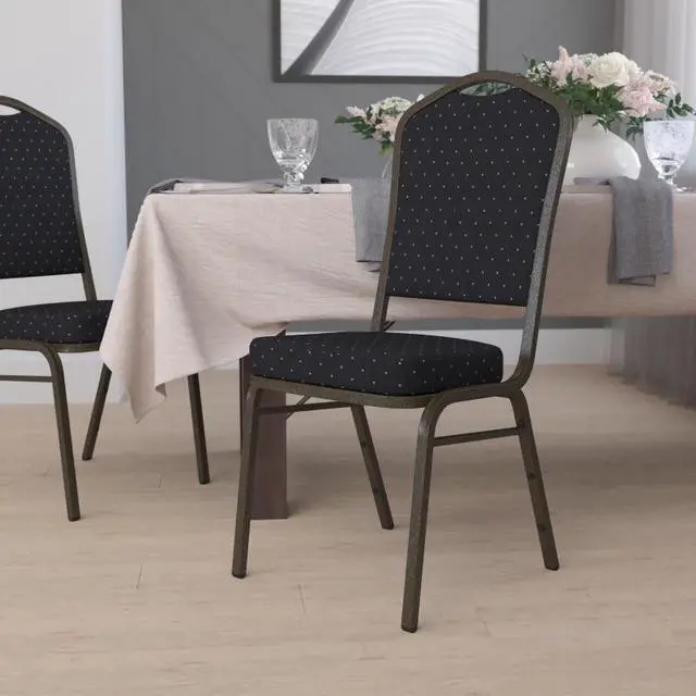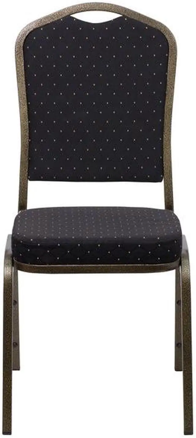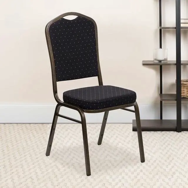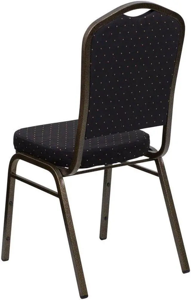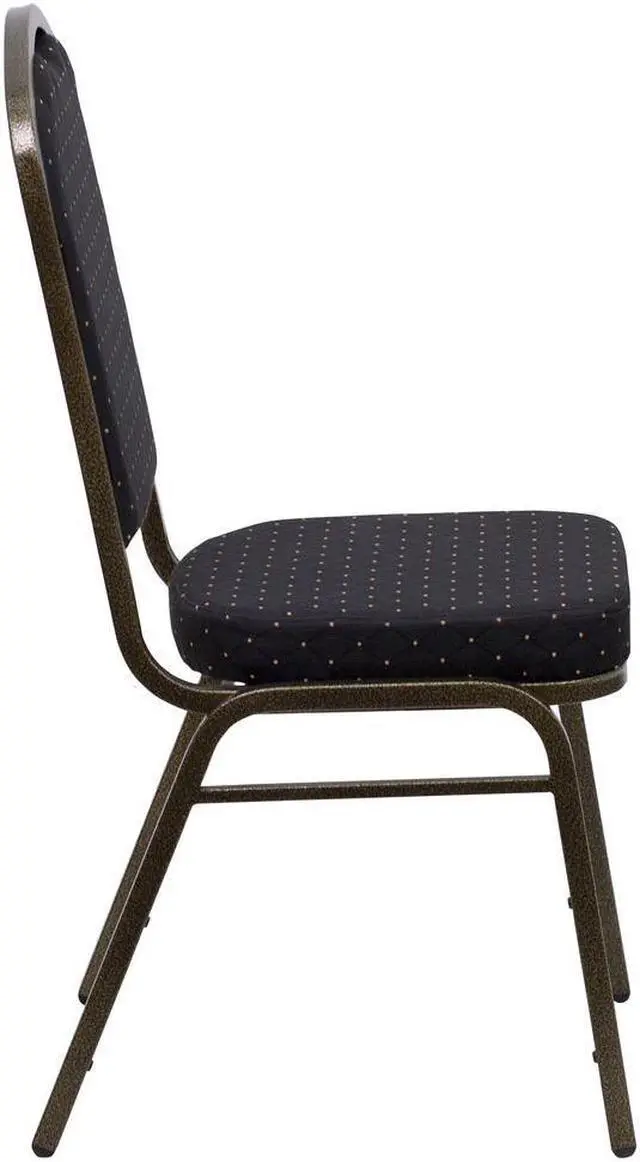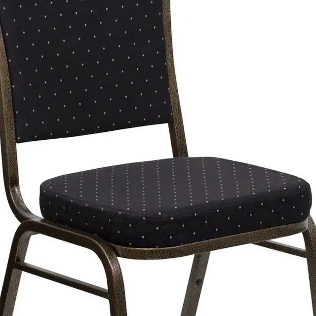 HERCULES Series Crown Back Stacking Banquet Chair in Black Patterned Fabric - Gold Vein Frame