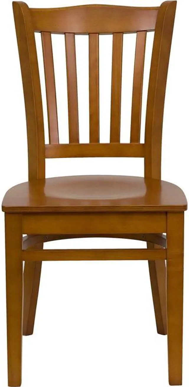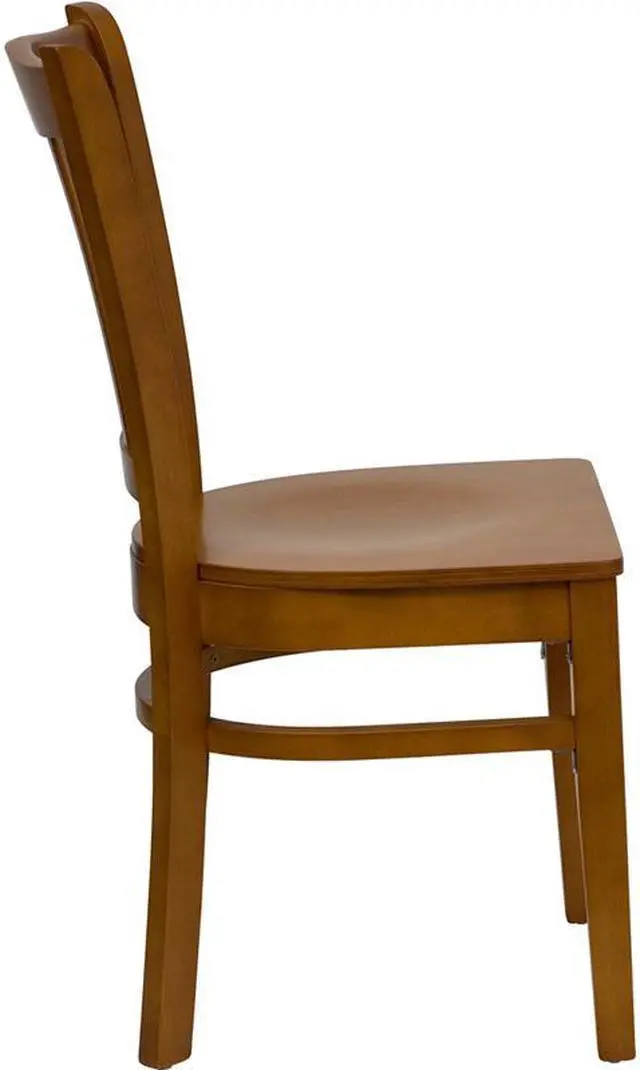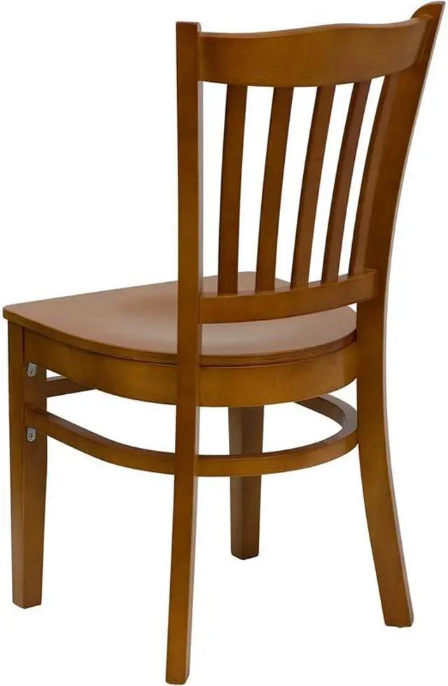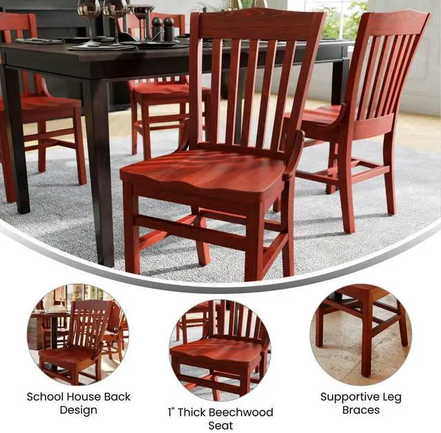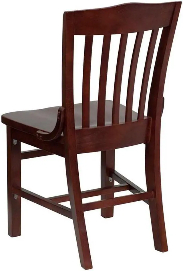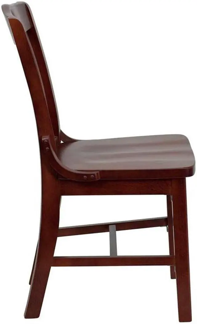 Offer a classic, elegant look when furnishing your establishment with this richly hued mahogany wood dining chair. This wooden chair will make an attractive addition to your restaurant, lounge, bar or other high traffic venues. This chair is easy to clean, which is an important aspect when it comes to a business. This chair was designed to withstand the daily rigors in the hospitality industry, but will also provide a warm and inviting quality to your home. The durable frame is stabilized with mortise and tenon construction. The floor glides help protect your floors and ensure smooth gliding. This gracefully styled chair will highlight any space in your home or business.Product Dimension-18.5"W x 21.5"D x 35"H