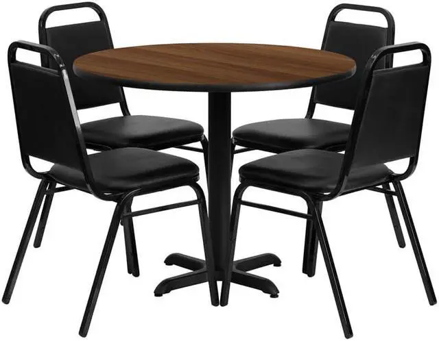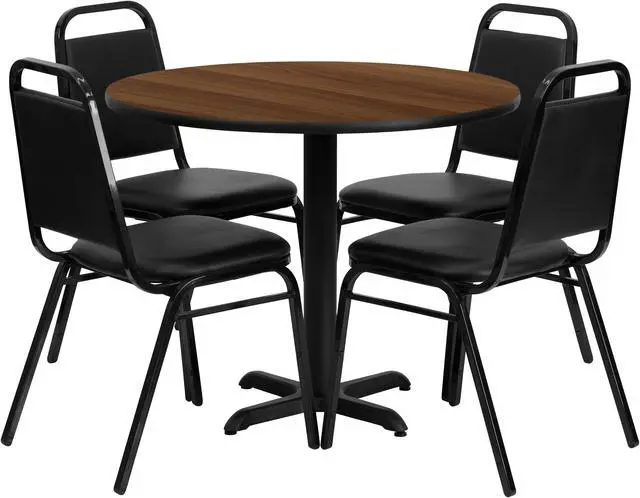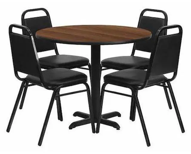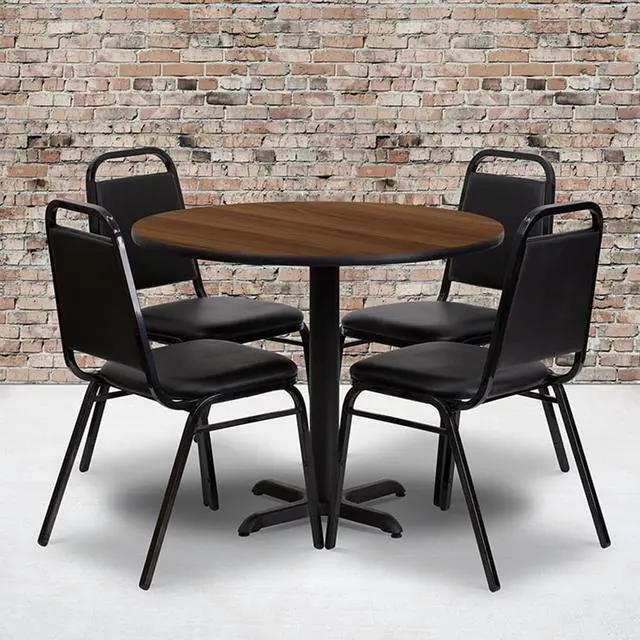 Walnut Table Set, Banquet Chr, X-Base, 36 In.