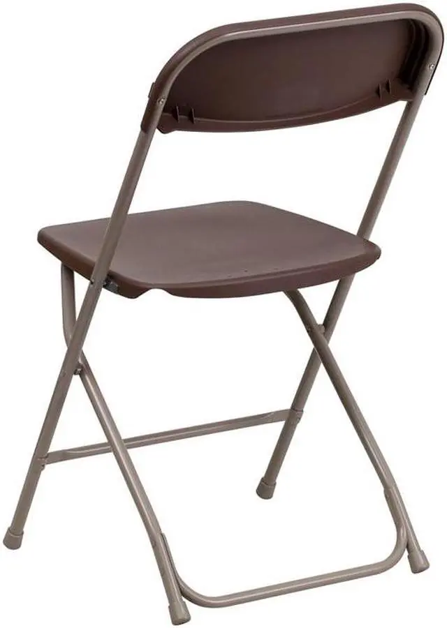Celebrate the holidays and social gatherings without writing "bring your own chair" on the invite. The 650 lb. Capacity Premium Brown Plastic Folding Chair is a convenient option for weddings, school functions, barbecues, game night, and catering events. Stay comfortable during social events with the gentle contour shaped seat and back. This portable folding chair is popular in the event rental industry due to its lightweight and incredible strength to hold up to 650 pounds of static weight. Additional advantages of our plastic folding chairs include: - Ready-to-use, no assembly required - - Stackable storage, chairs stack on top of one another without shifting - - Drainage holes prevent spills and rainwater from pooling - - Textured seat adds additional seating security - - Non-marring floor caps protect hard surfaced flooring - Foldable chairs provide a stress-free on-demand seating solution from group therapy sessions to indoor and outdoor corporate events. These low-maintenance party event chairs wipe down easily after luncheons. Make a smart investment by purchasing multiple plastic folding chairs for your rental business, waiting room or for the next time your company throws an Employee Appreciation Day.