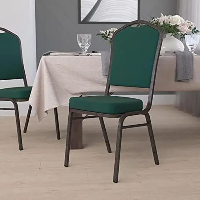 The sturdy frame with gracefully angled legs are made of 16 gauge steel in a lasting powder coated finish. Double support braces reinforce the frame to give it great strength and durability. Bumper guards prevent scratches on the frame when stacked (up to 15 high) and non-marring floor glides protect your floor by sliding smoothly when you need to move the chair. This multi-use stacking upholstered stack chair is an excellent option for churches, banquet halls, training rooms, hotels, convention centers and schools. Add banquet chairs to your home dining table to add a contrasting look to your dining room or kitchen.