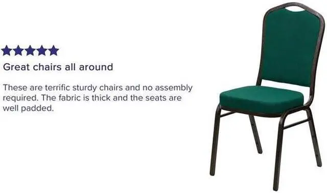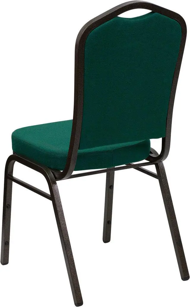 Make an impressive presentation in your banquet hall when clients come to visit your facility with these ballroom chairs. Built for the commercial industry these popular crown back banquet chairs have been tested to hold up to 500 pounds. With a high seating capacity these stack chairs are perfect for the event rental business. This standout hospitality chair can be used as is and still command attention or be dressed up for formal events by placing a chair cover over it. The chair is cushioned with 2.5" thick CAL 117 fire retardant foam and is covered in durable upholstery for high usage.