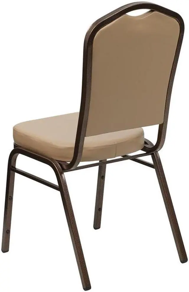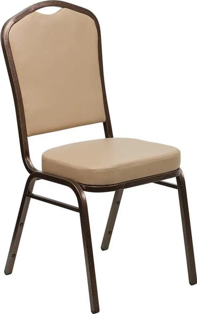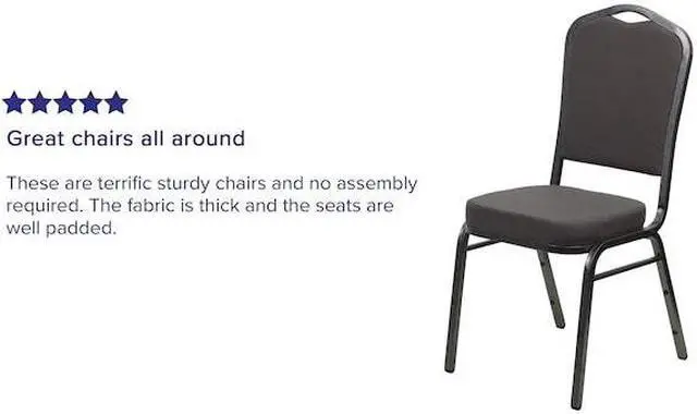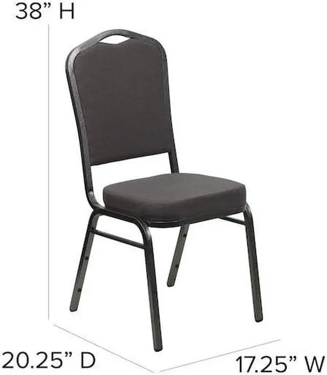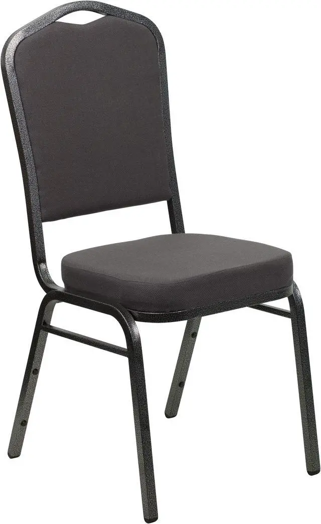Make an impressive presentation in your banquet hall when clients come to visit your facility with these ballroom chairs. Built for the commercial industry these popular crown back banquet chairs have been tested to hold up to 500 pounds. With a high seating capacity these stack chairs are perfect for the event rental business. This standout hospitality chair can be used as is and still command attention or be dressed up for formal events by placing a chair cover over it. The chair is cushioned with 2.5" thick CAL 117 fire retardant foam and is covered in durable upholstery for high usage.