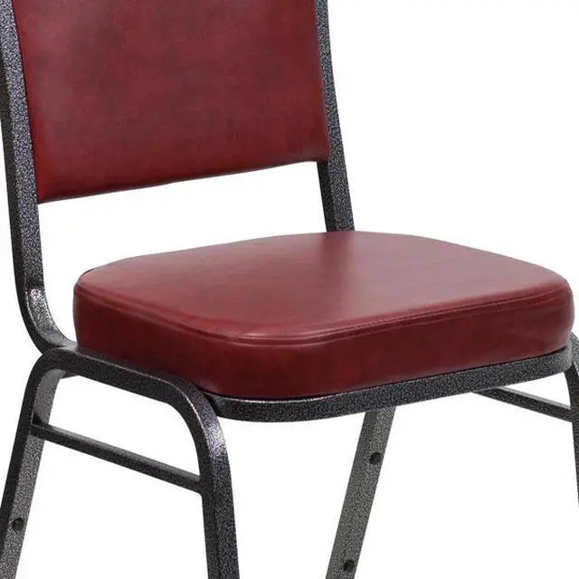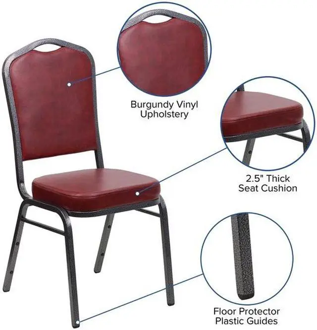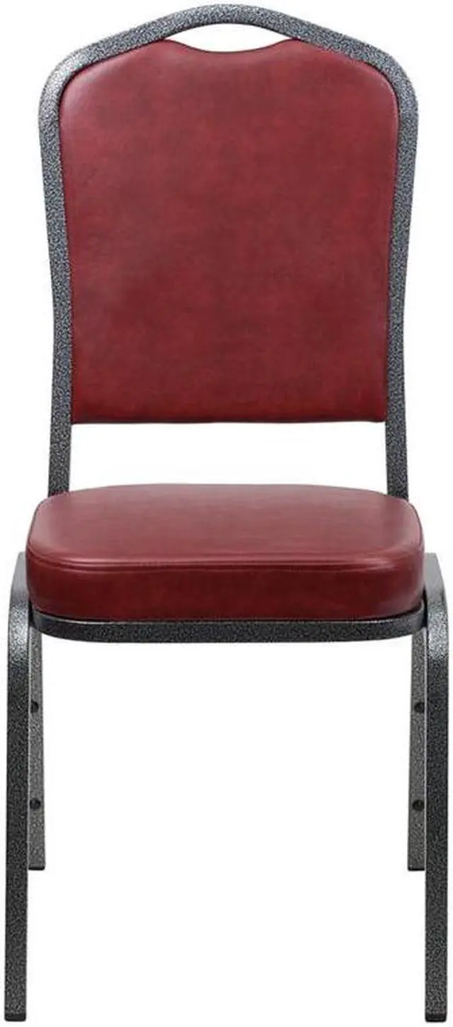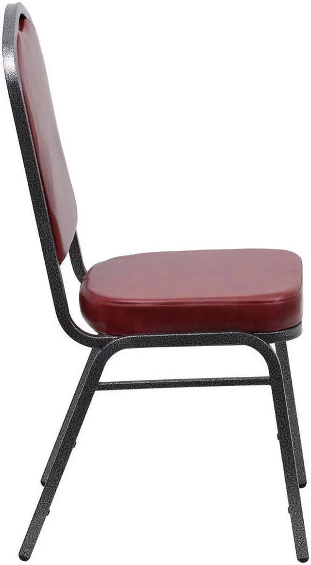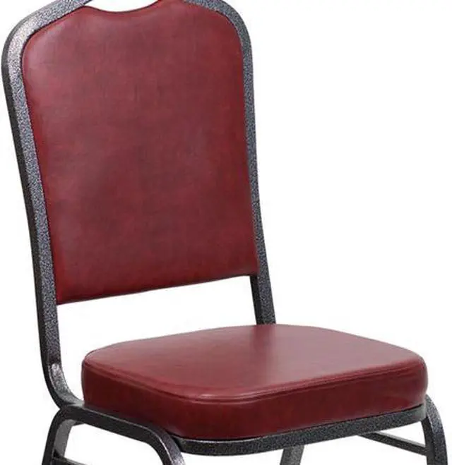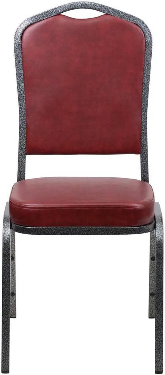 HERCULES Series Crown Back Stacking Banquet Chair in Burgundy Vinyl - Silver Vein Frame