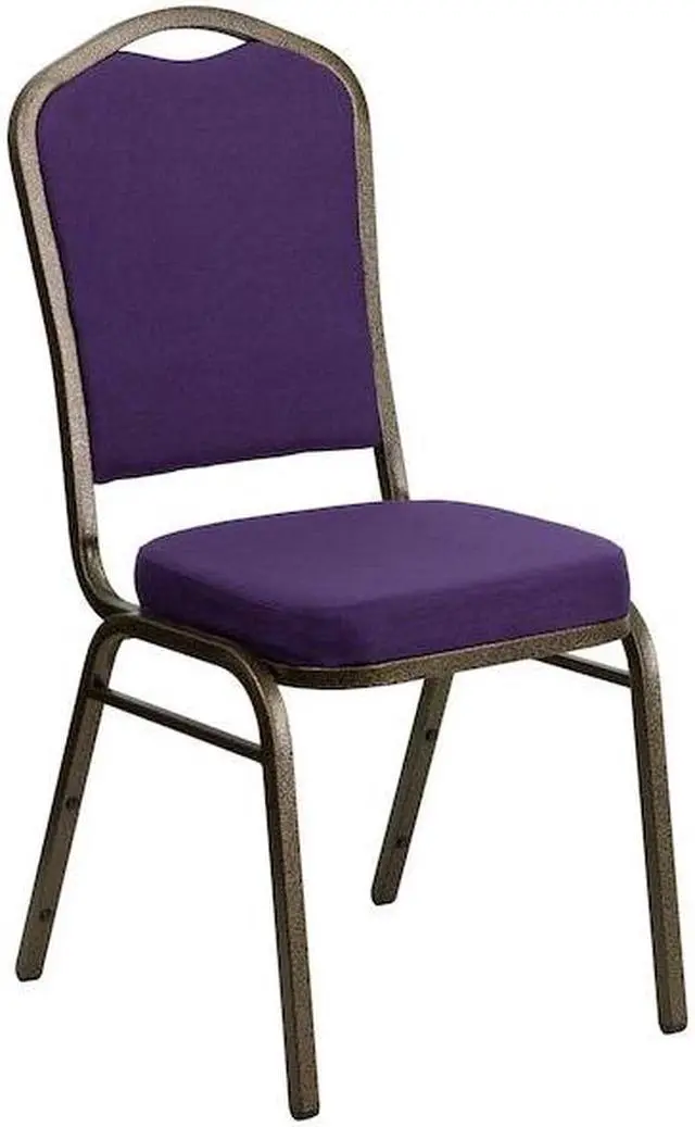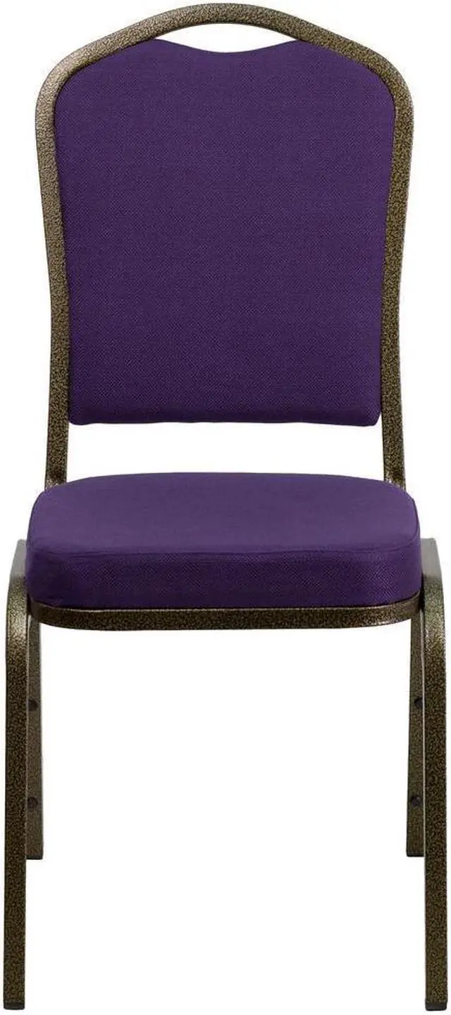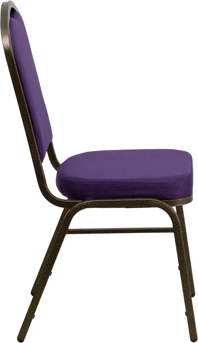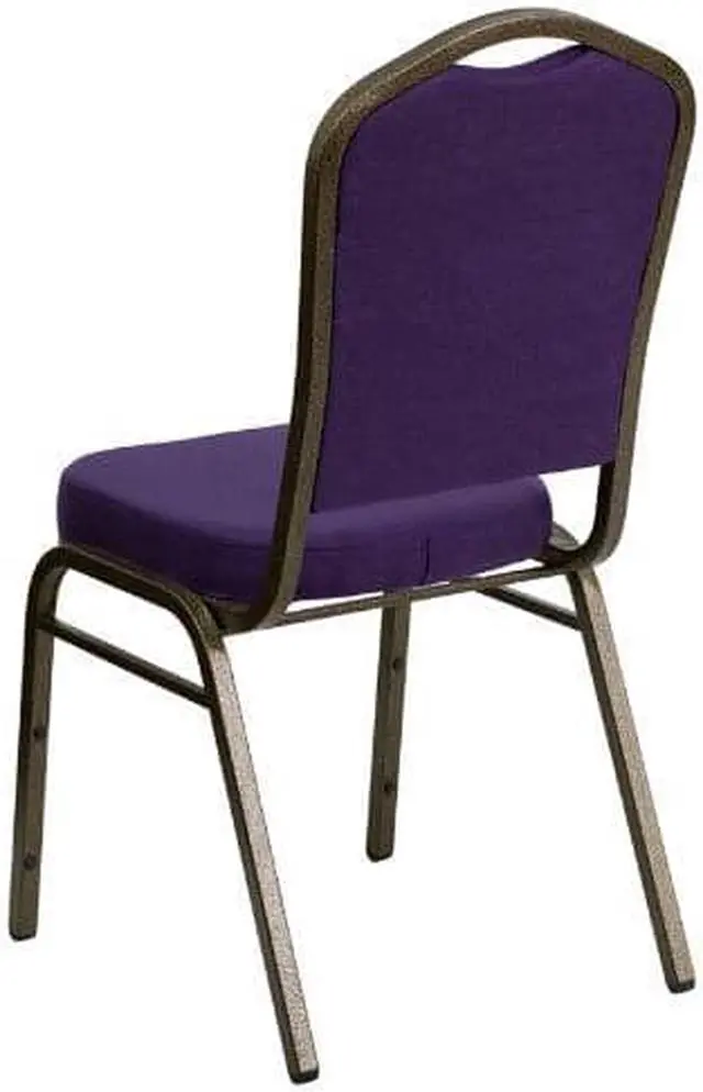 HERCULES Series Crown Back Stacking Banquet Chair in Purple Fabric - Gold Vein Frame