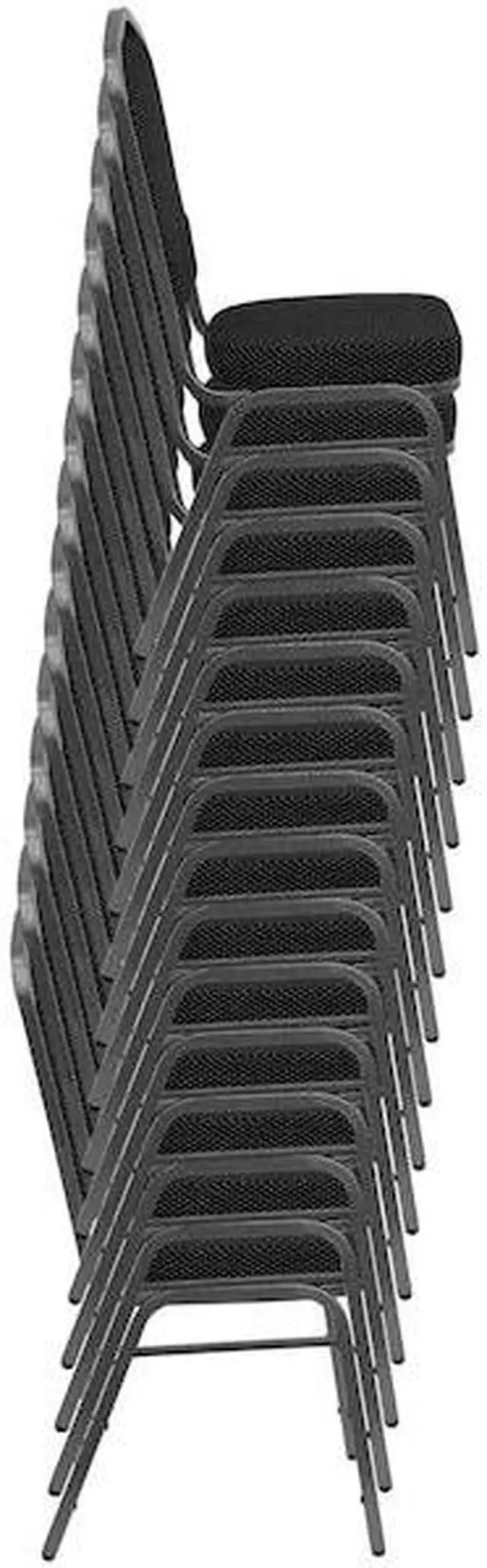 The sturdy frame with gracefully angled legs are made of 16 gauge steel in a lasting powder coated finish. Double support braces reinforce the frame to give it great strength and durability. Bumper guards prevent scratches on the frame when stacked (up to 15 high) and non-marring floor glides protect your floor by sliding smoothly when you need to move the chair. This multi-use stacking upholstered stack chair is an excellent option for churches, banquet halls, training rooms, hotels, convention centers and schools. Add banquet chairs to your home dining table to add a contrasting look to your dining room or kitchen.