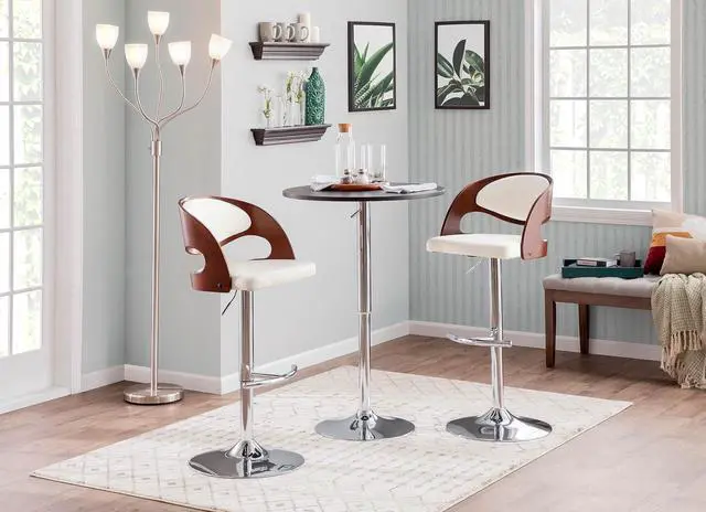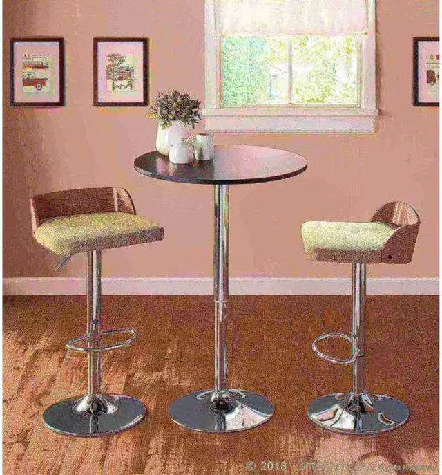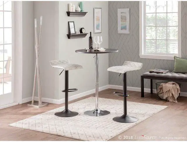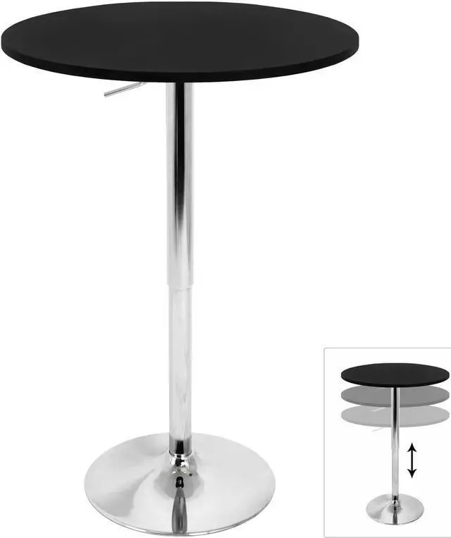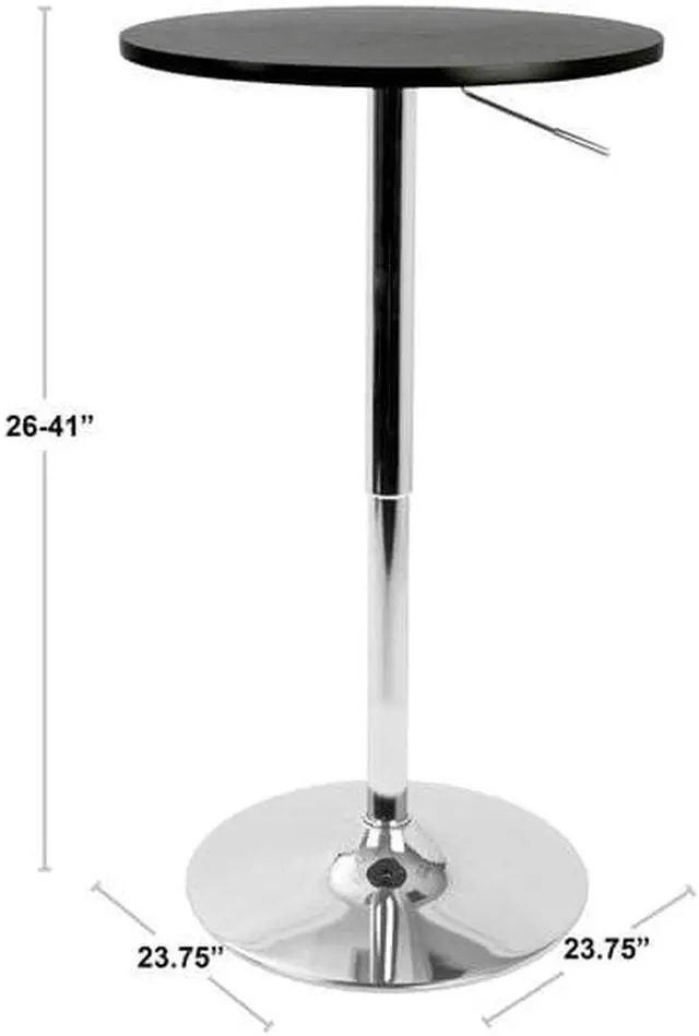 The Adjustable Bar Table is versatile for many uses. From a range of 26" to 41" in height, it can be used as an intimate table for two or a bar table at a party! Comes with a wood top measuring 27.5" diameters and a polished chrome pole and base.