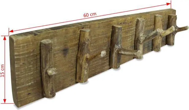 The rack is made of solid reclaimed wood, which has the characteristics of different woods like mahogany, teak, hard wood, mango wood, acacia, etc. You may find cavities left by nails, screws, or bolts, along with other imperfections, underlying the authenticity of the material. These imperfections disclose a rich history and are never intentionally made. The wood originates from naturally fallen trees, wooden boats, wooden houses, etc. Every piece of furniture is unique, and slightly different from the next. Signs of wear and the craftsmanship of this fully-handmade coat rack give each piece a unique look and add to its spectacular vintage style.